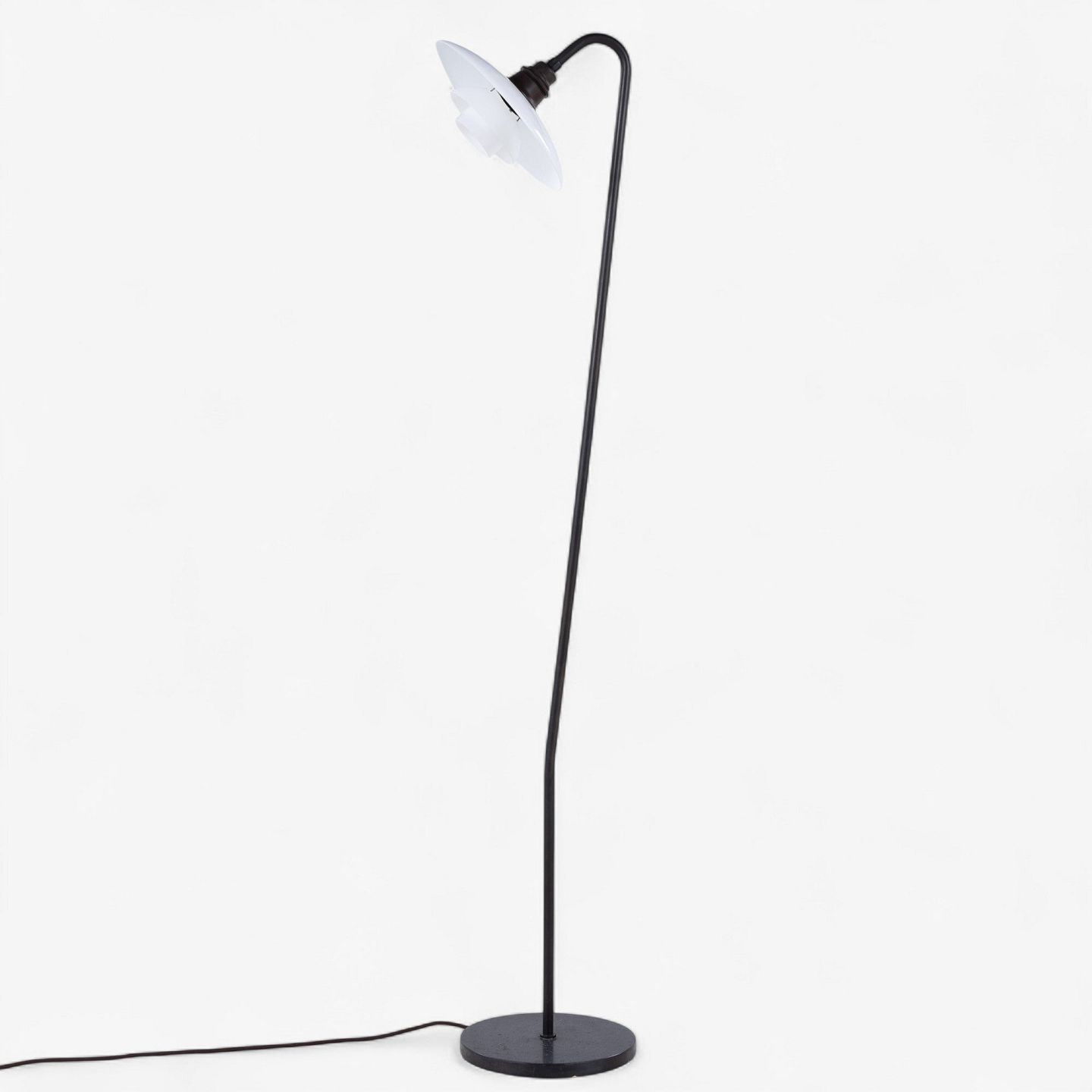 PH 3/2 - 'Syvtallet' gulvlampe med stel i bruneret messing og skærme i hvidt opalglas. Stemplet 'Patented'.