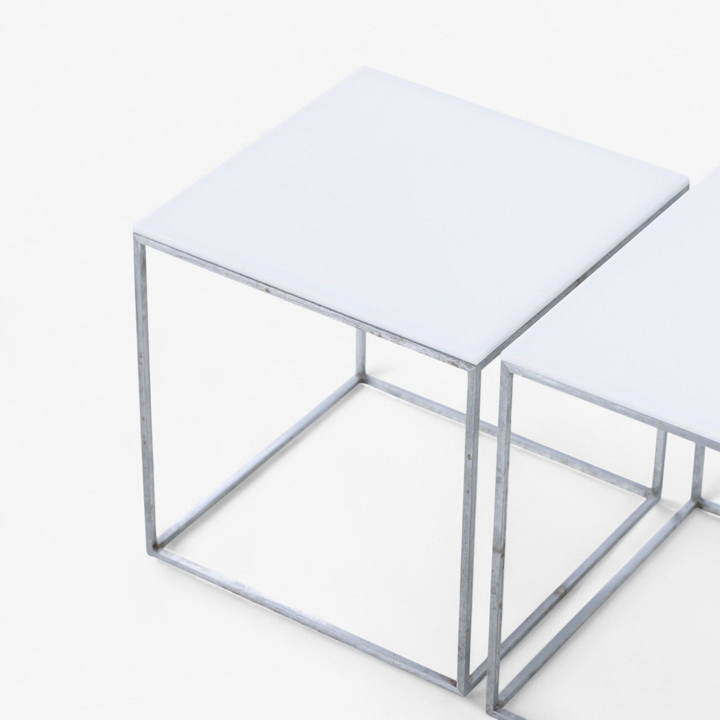 PK 71 - Indskudsborde i stål med top i hvid formica (3 stk).