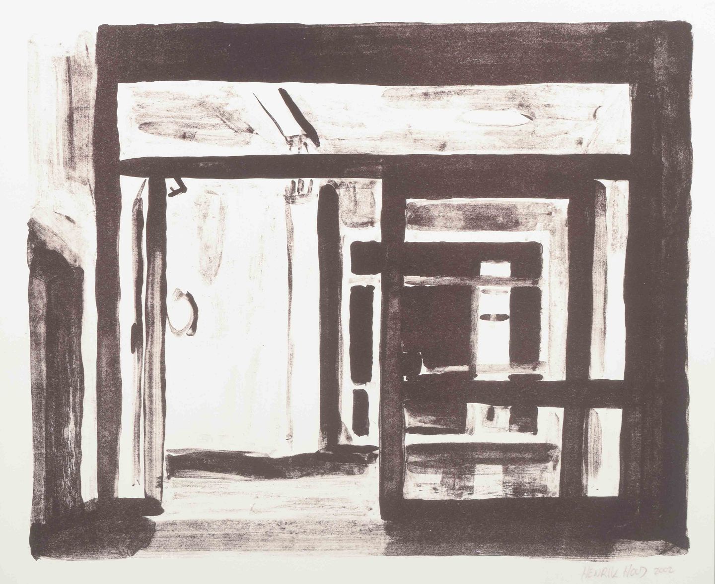 Et grafisk værk af den tyske kunstner Henrik Hold, hvor geometriske og arkitektoniske elementer kombineres i et stærkt sort/hvidt udtryk.