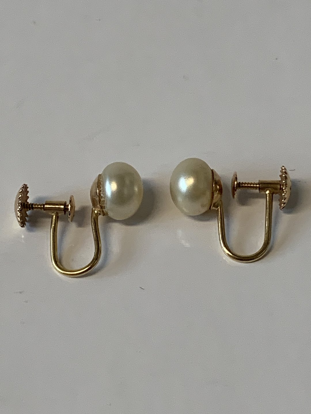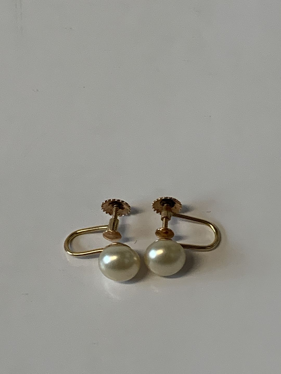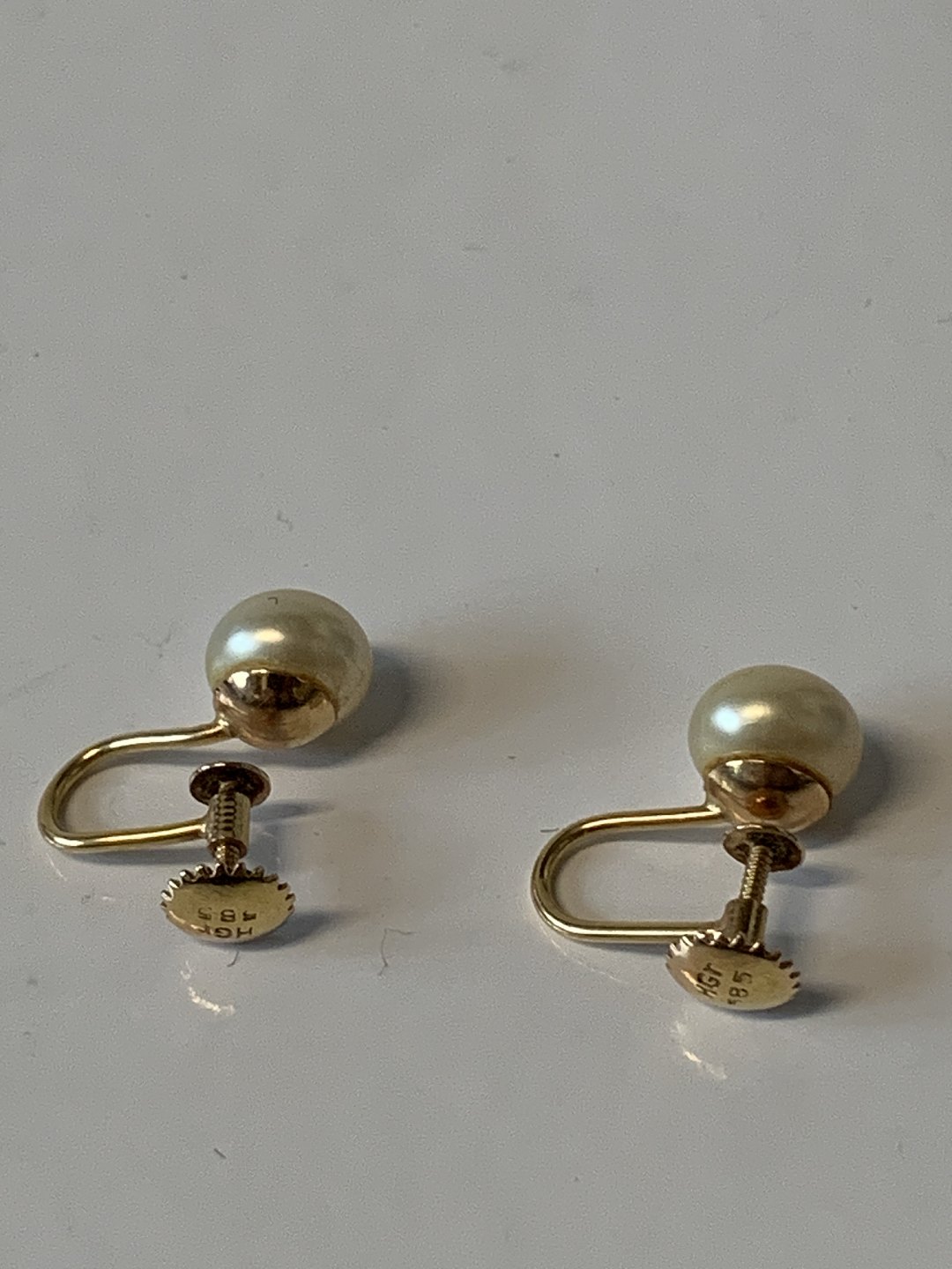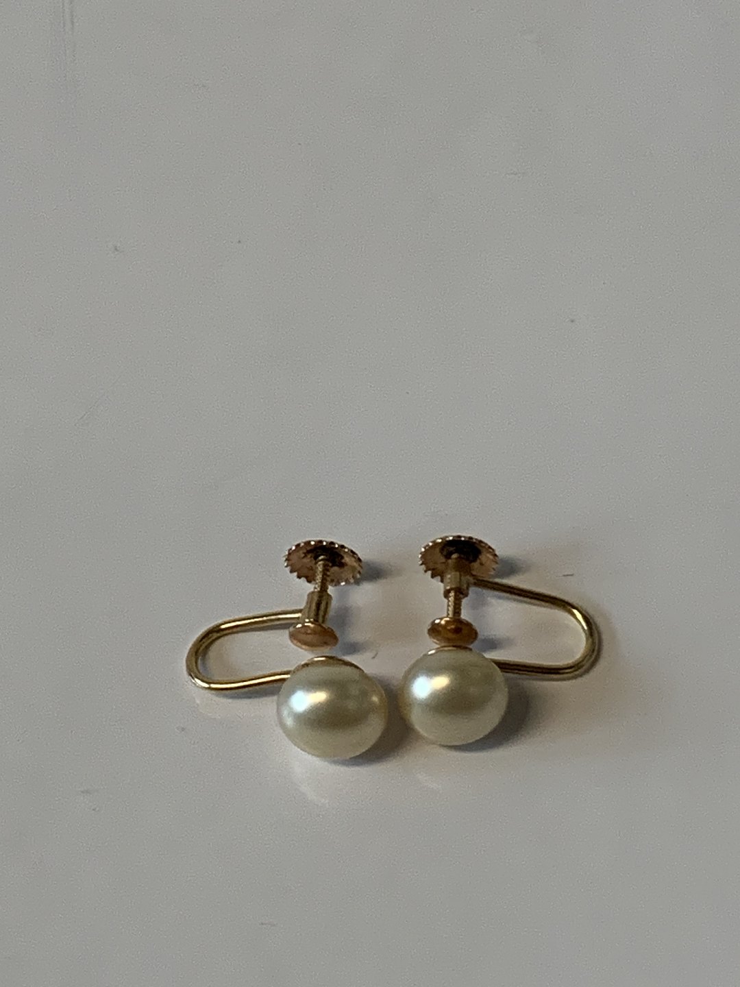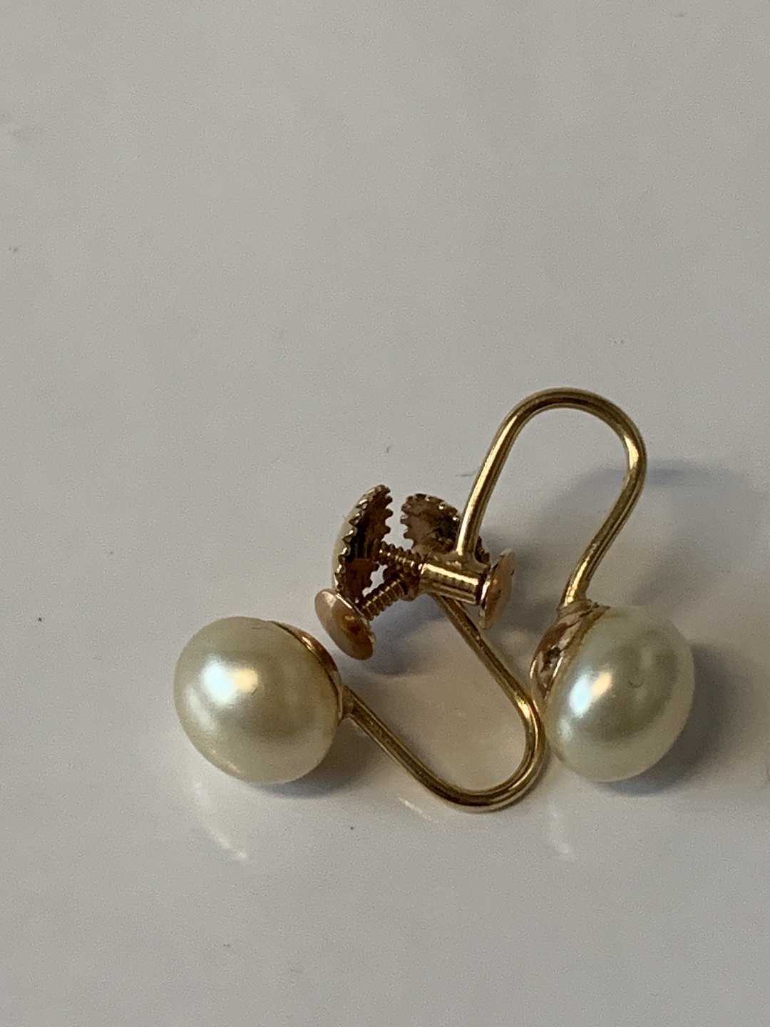 Earrings with pearl, 14 Karat Gold with Screw Lock.