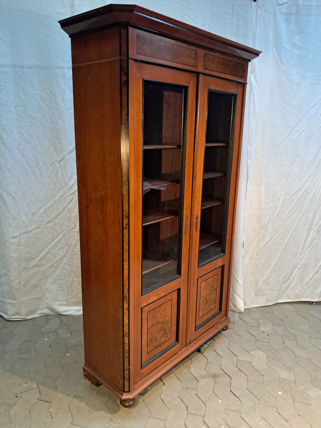 Vitrineskab i fineret mahogni, fra 1900erne.