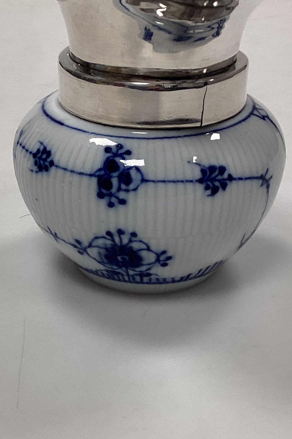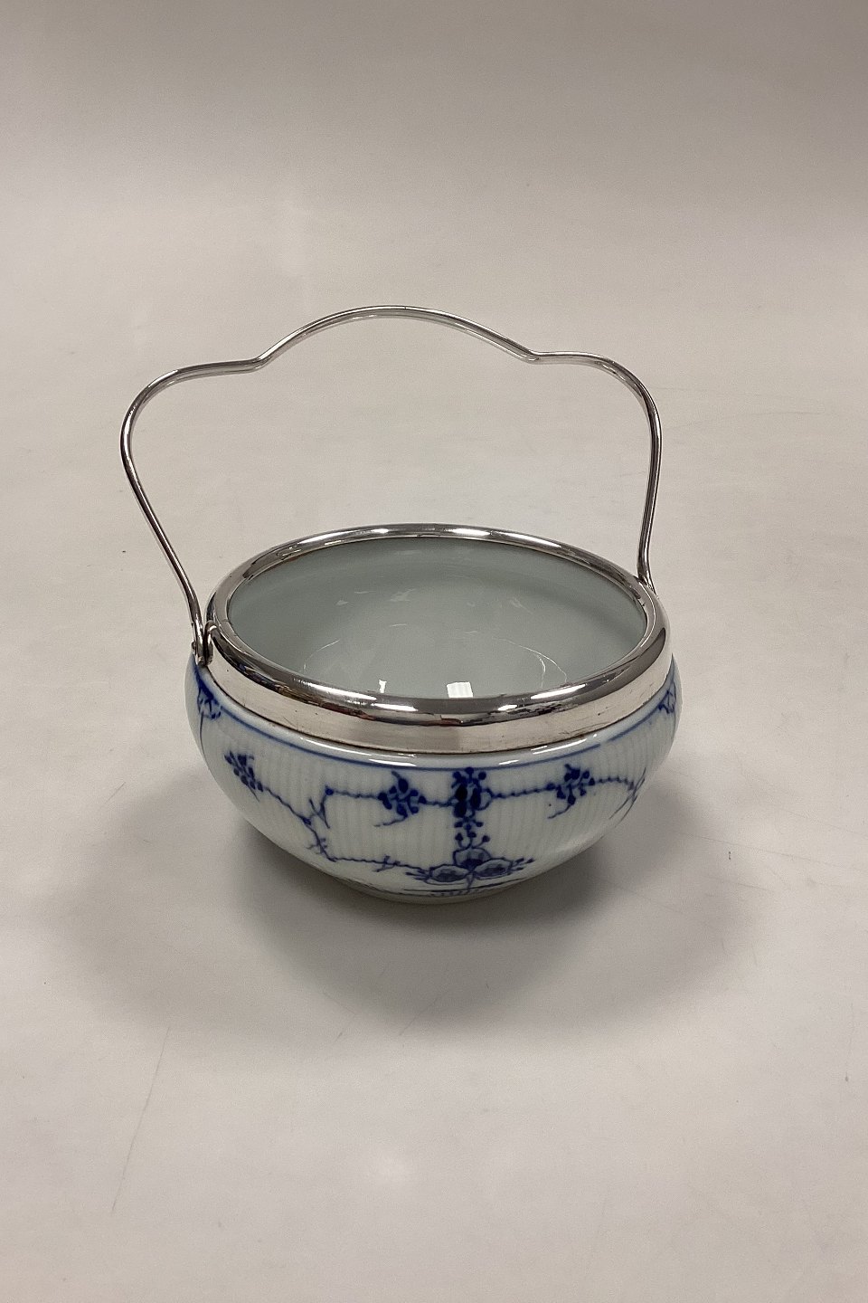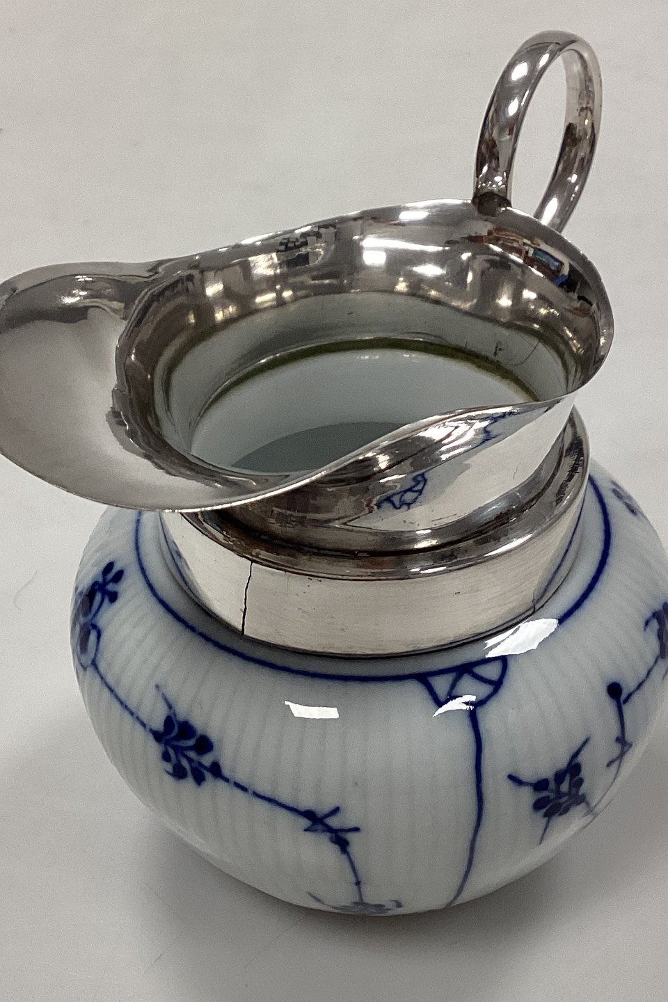 Tysk musselmalet Sukker og Fløde sæt, med metal montering, muligvis nikkel.
