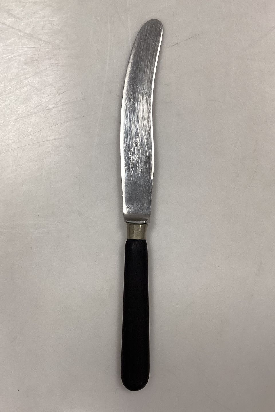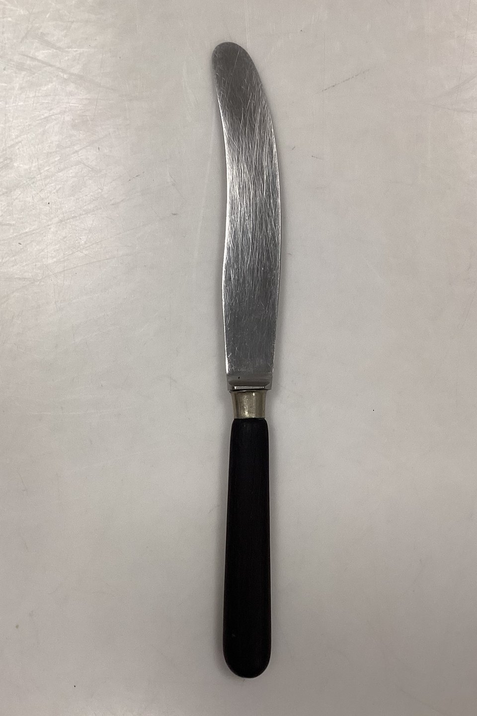 Raadvad Rustfri Spisekniv med mørkt bakelit/plasthåndtag. I god stand.