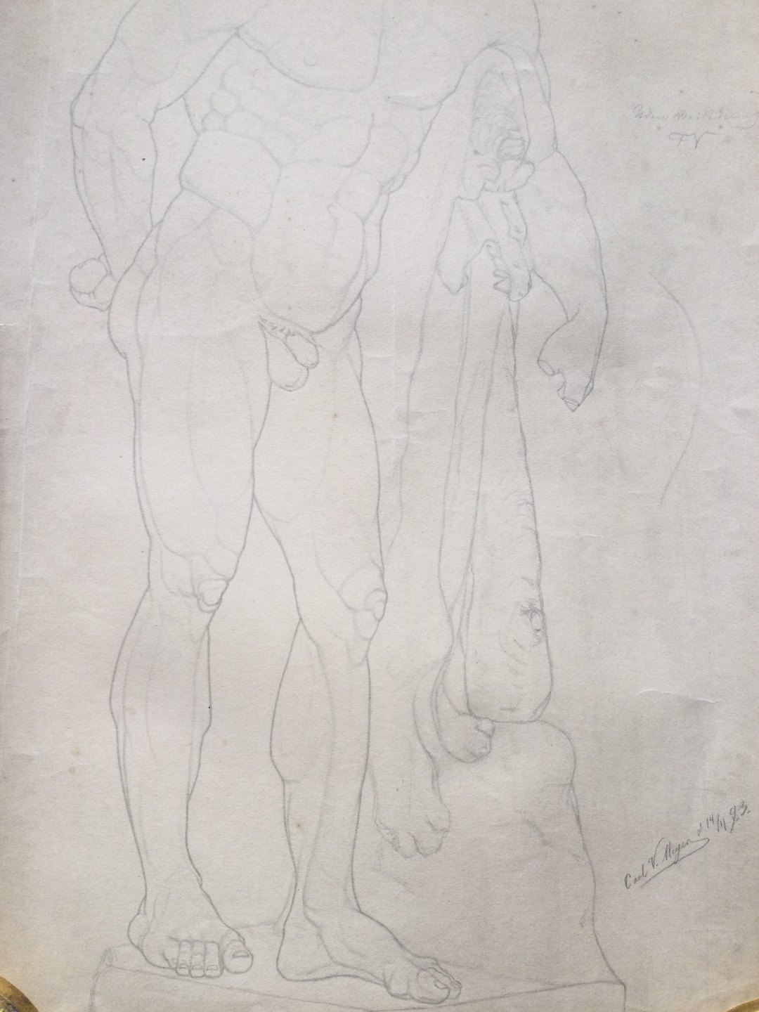 Akademitegning af Carl V. Meyer - Nøgen mand med kølle - Den Farnesiske Herkules 1893.
