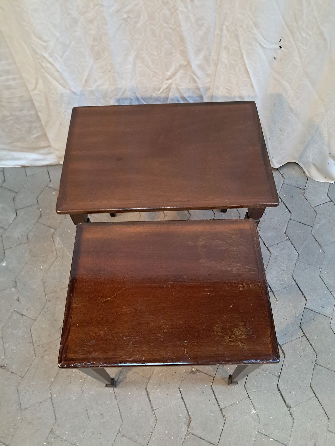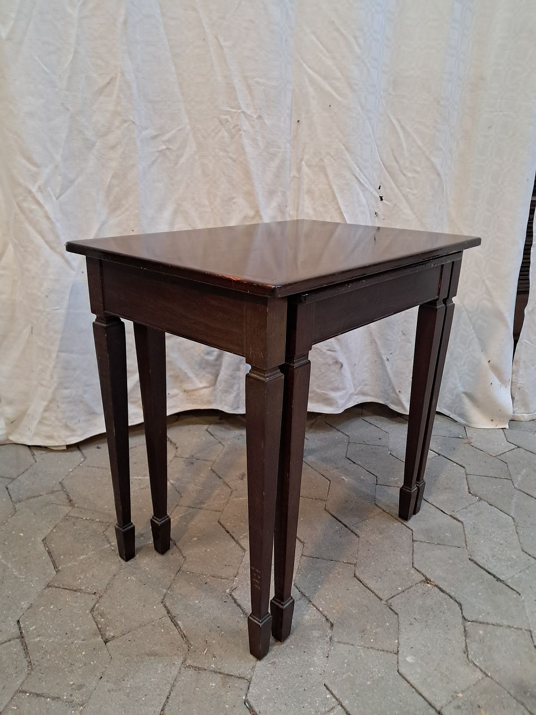 2 Indskudsborde i fineret mahogni, fra 1980erne.