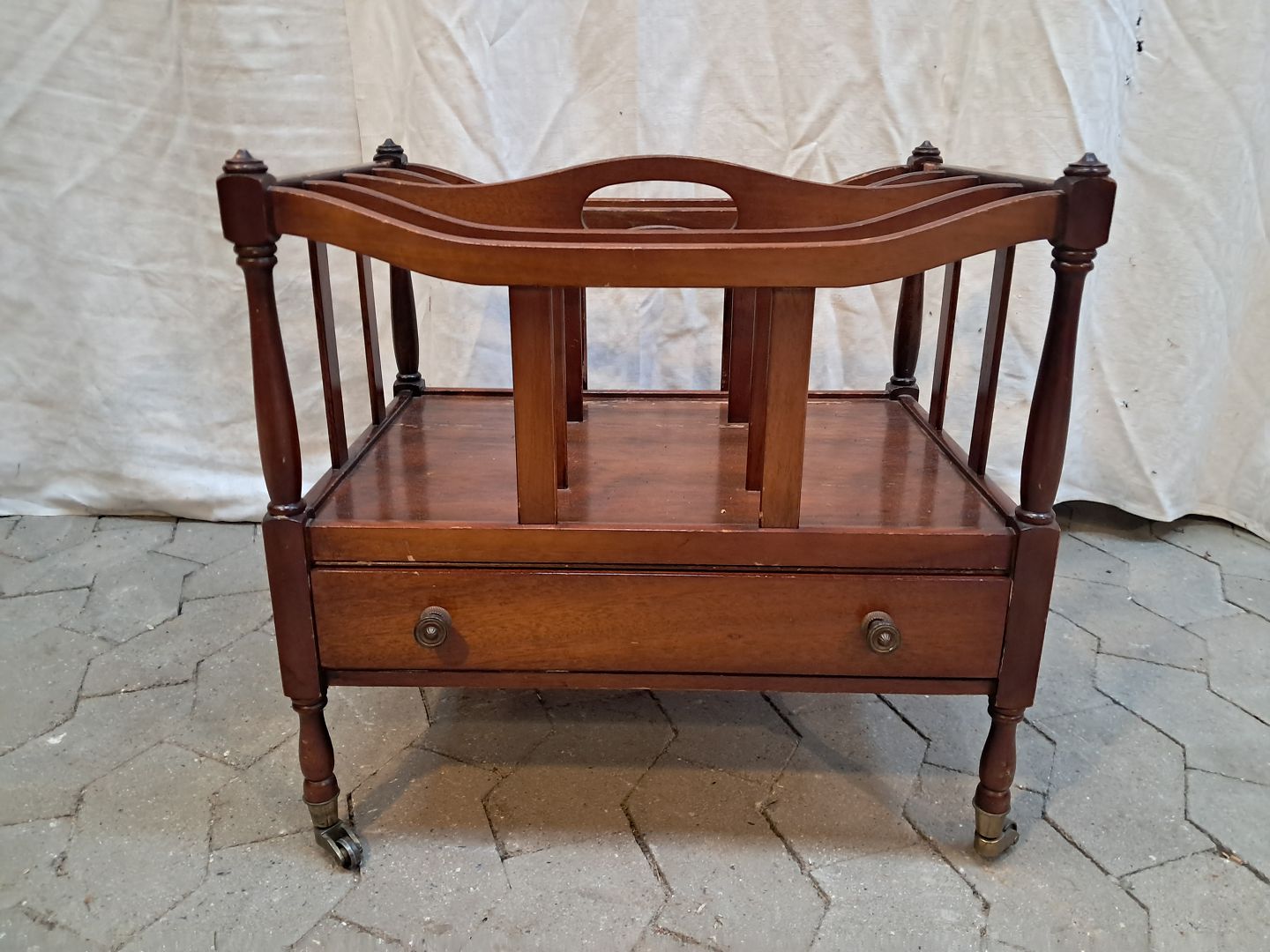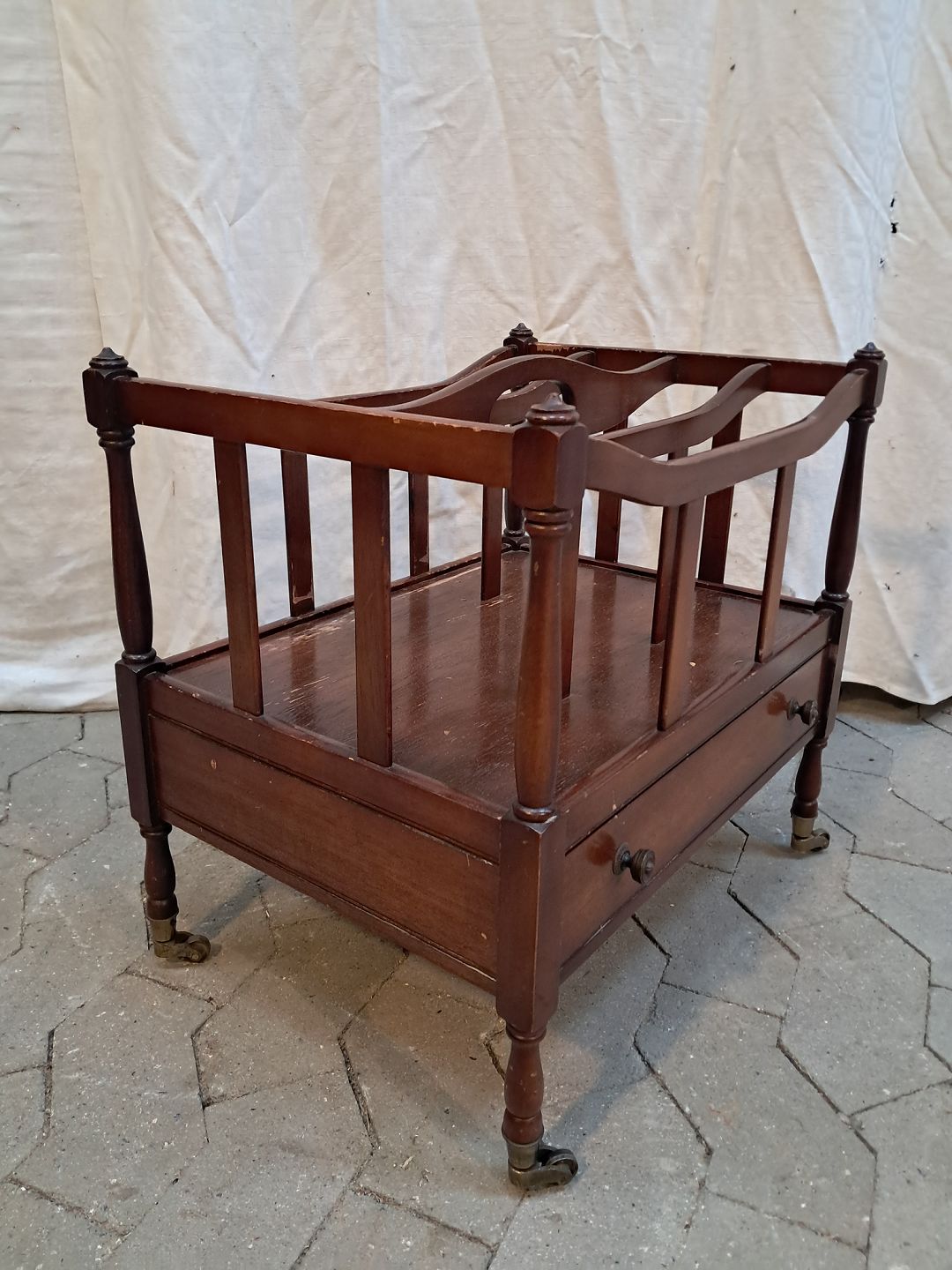 Magasinholder i bejdset bøgetræ, fra 1980erne.