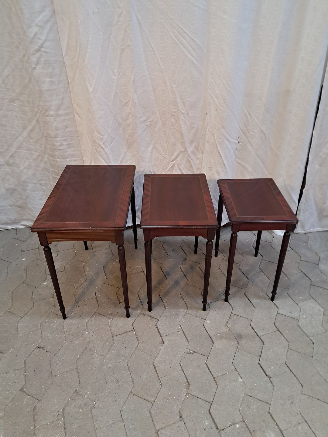 3 Indskudsborde i fineret mahogni, fra 1980erne.