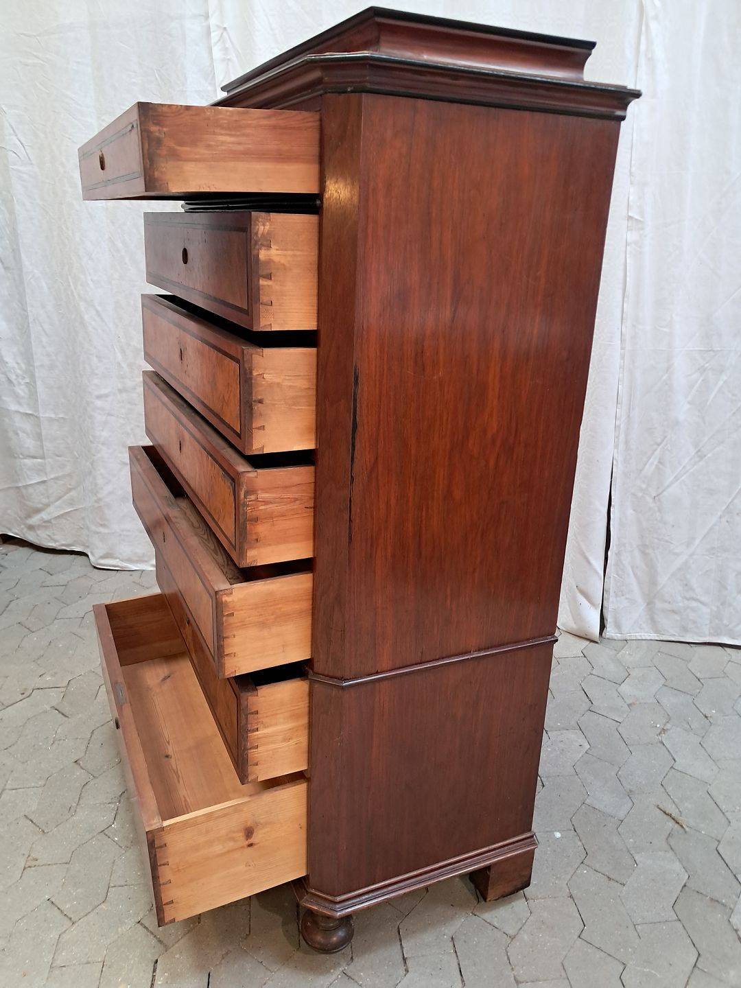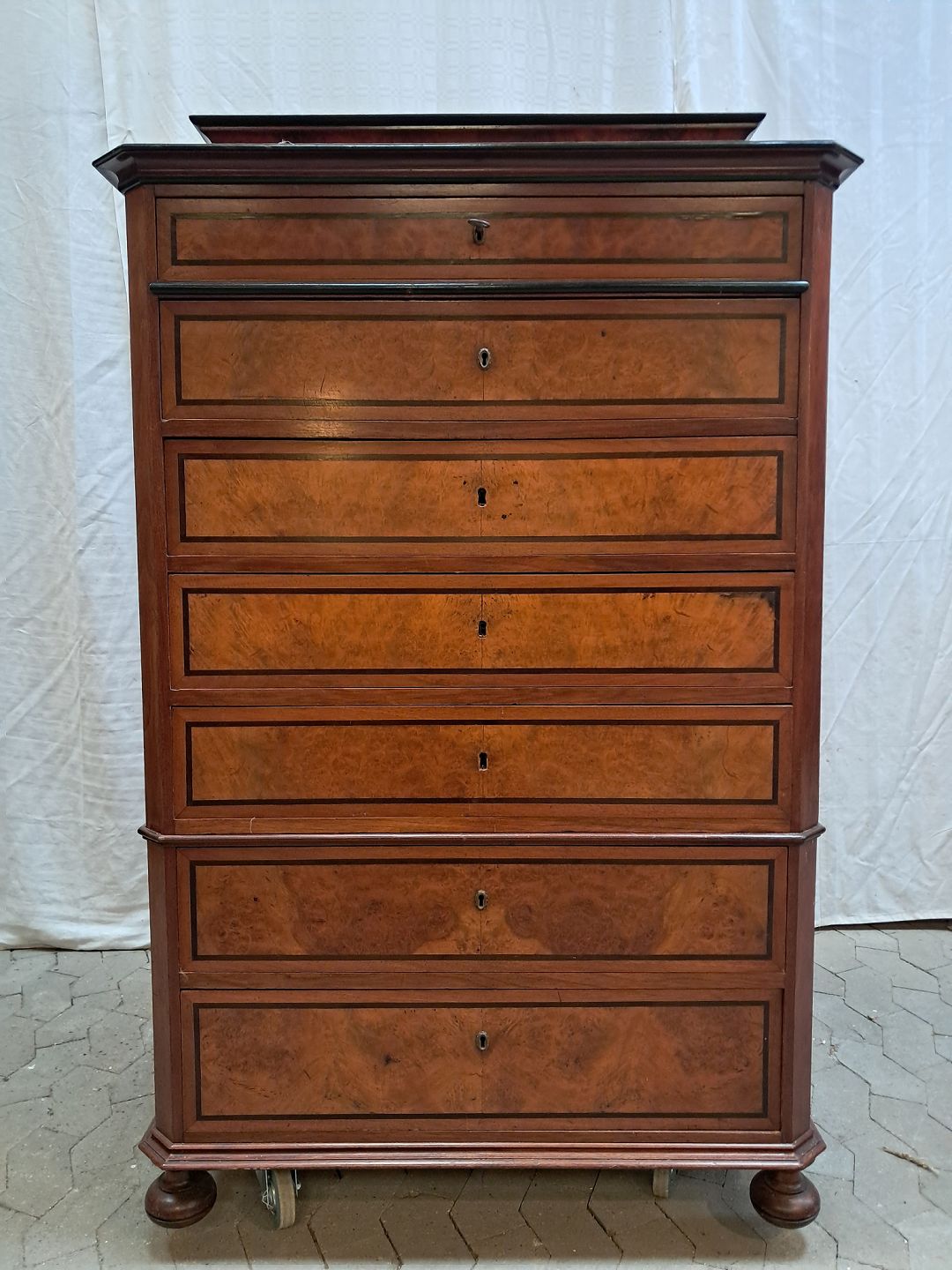 Chiffoniere i fineret mahogni, fra 1900erne.