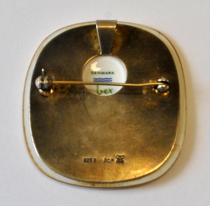 Michelsen for Royal Copenhagen. "Flora Danica" broche / vedhæng i porcelæn og sterlingsølv