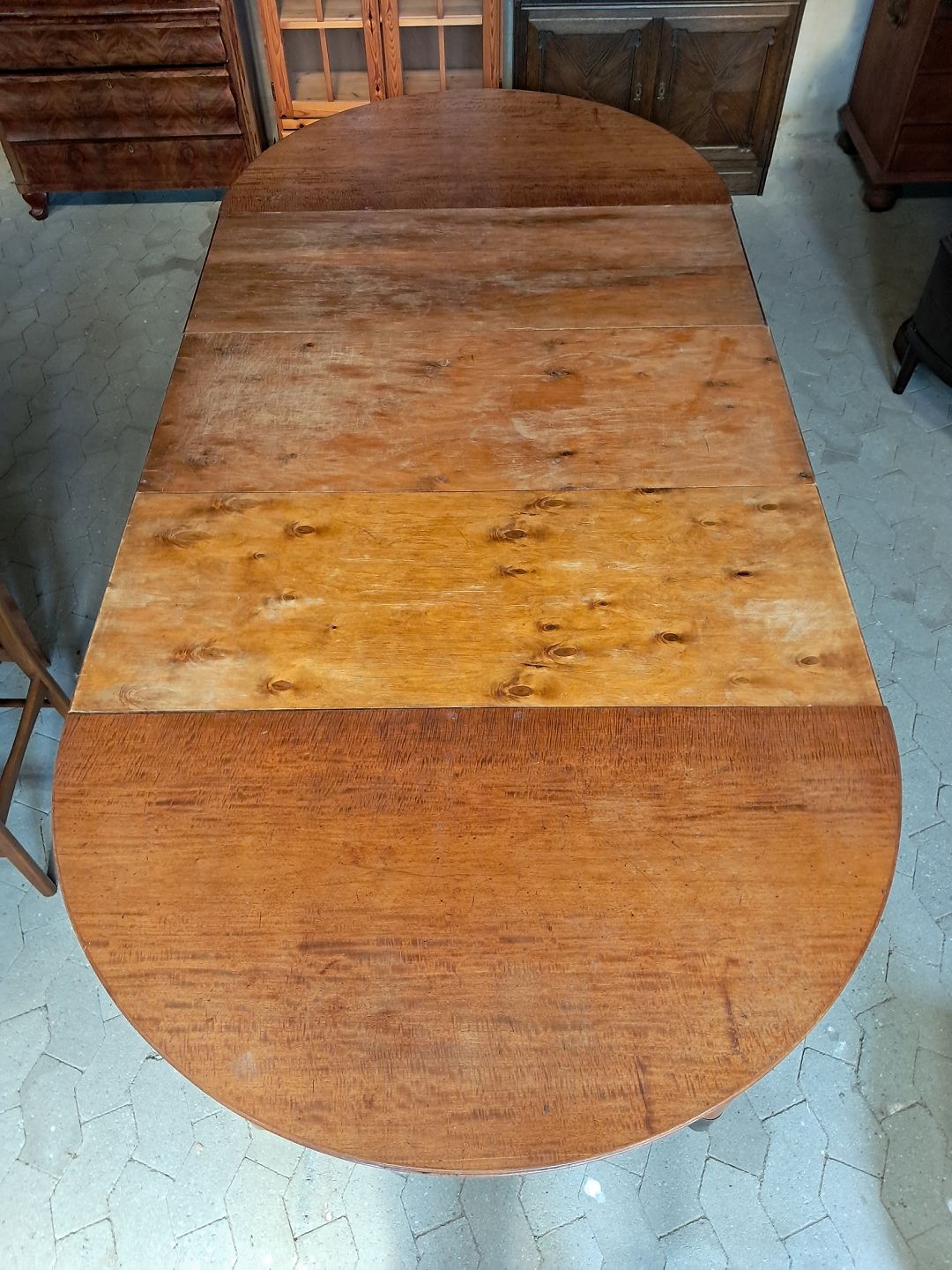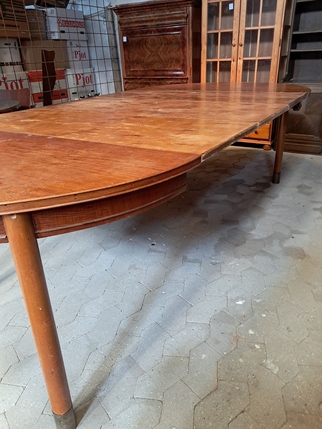 Spisebord i fineret mahogni med 3 tillægsplader, fra 1950erne.