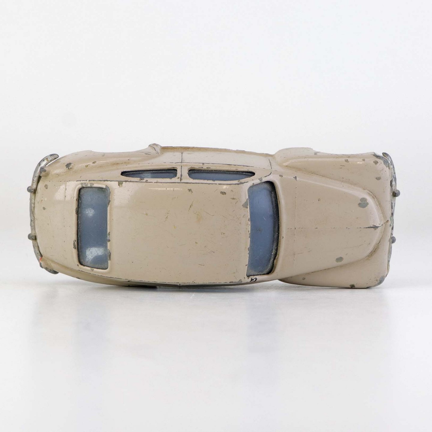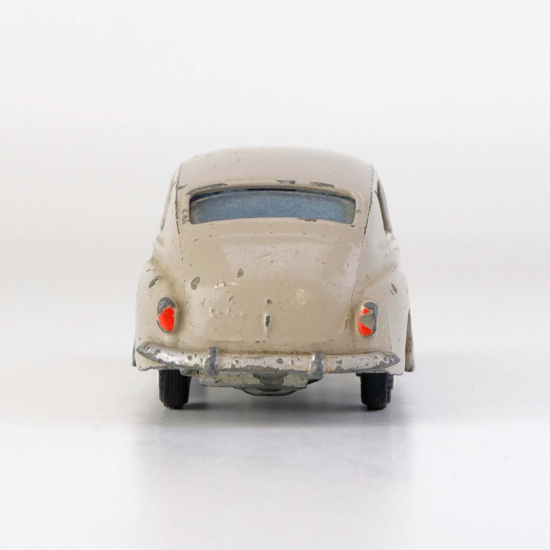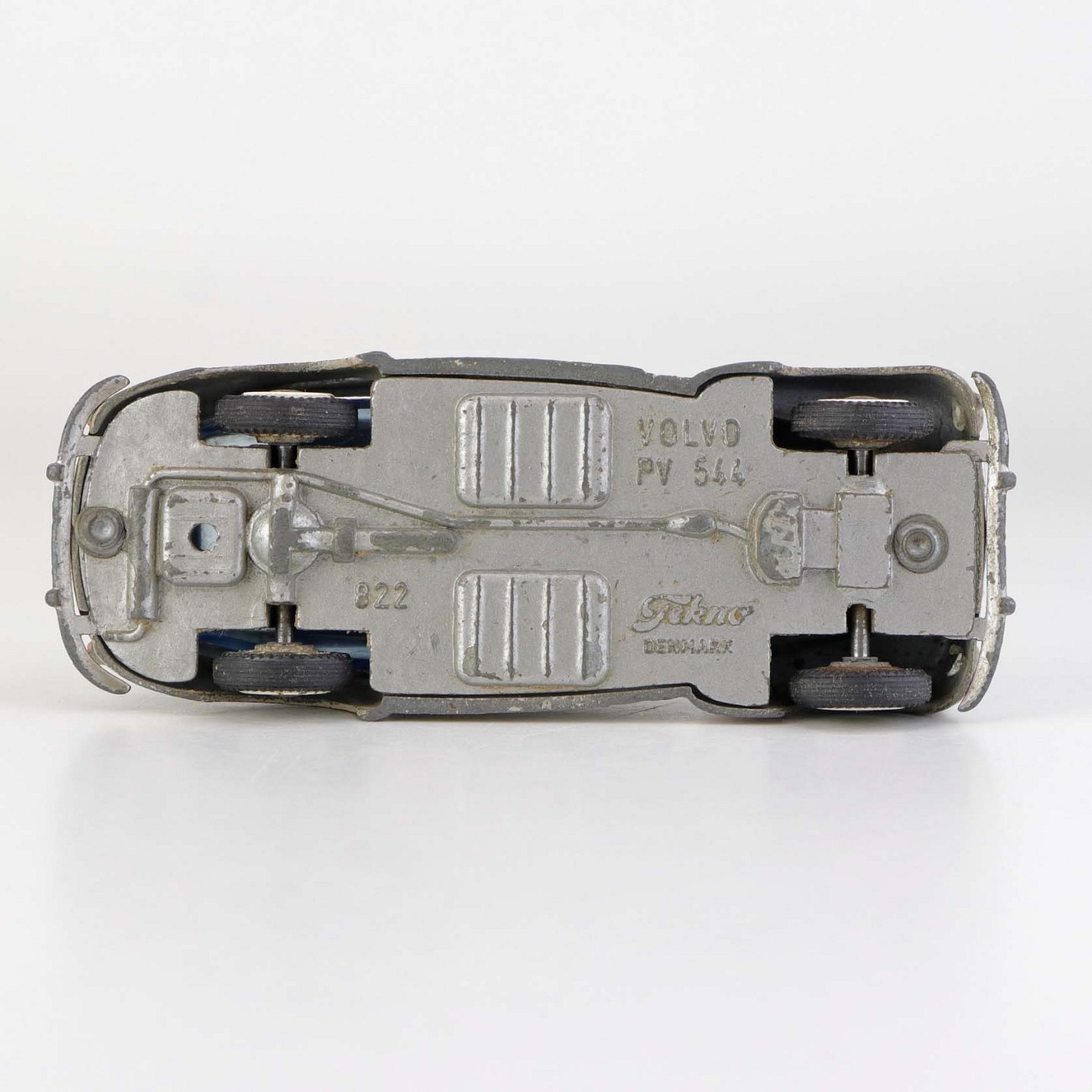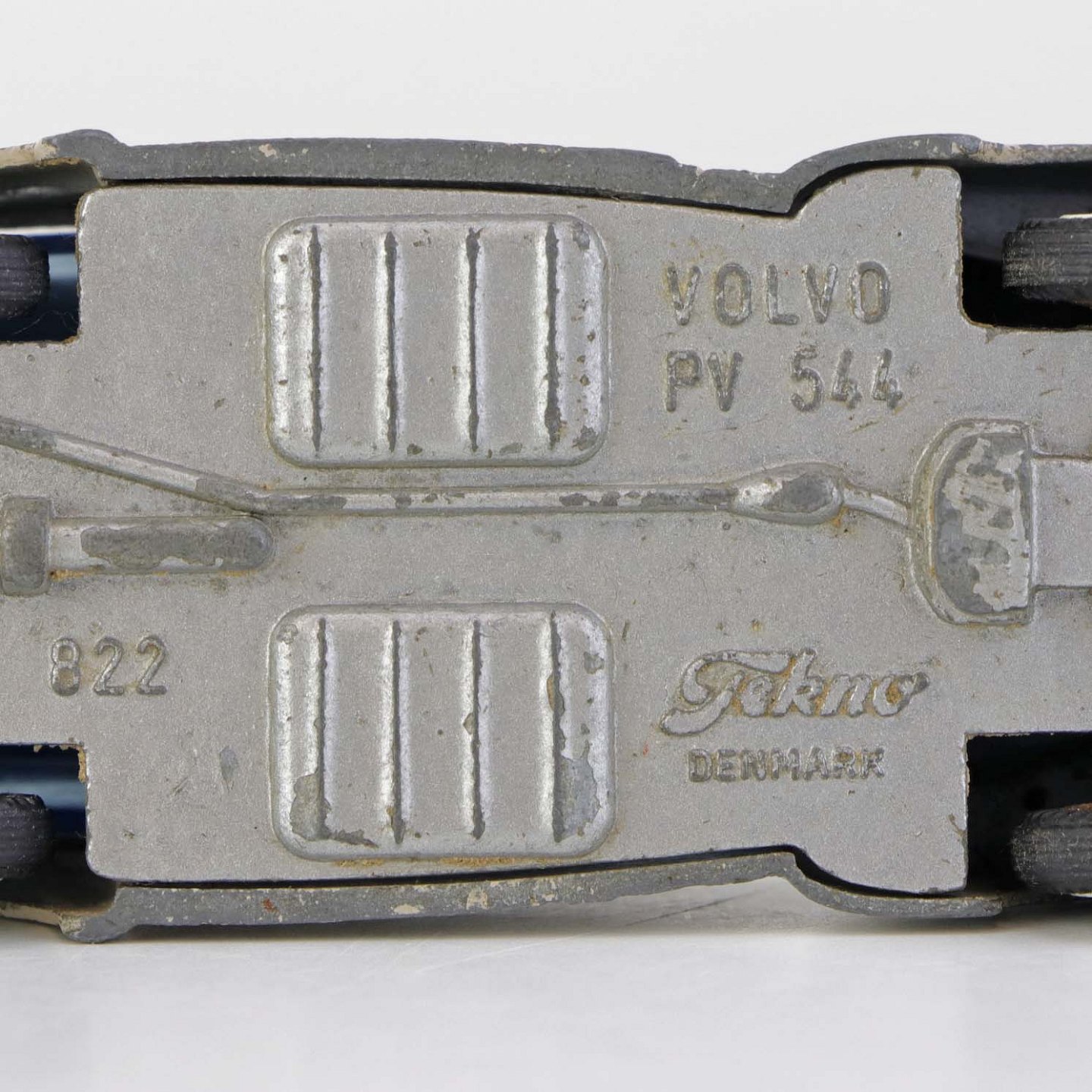 Beigefarvet Volvo PV 544 legetøjsbil i lakeret metal med gummi hjul. Nr. 822
