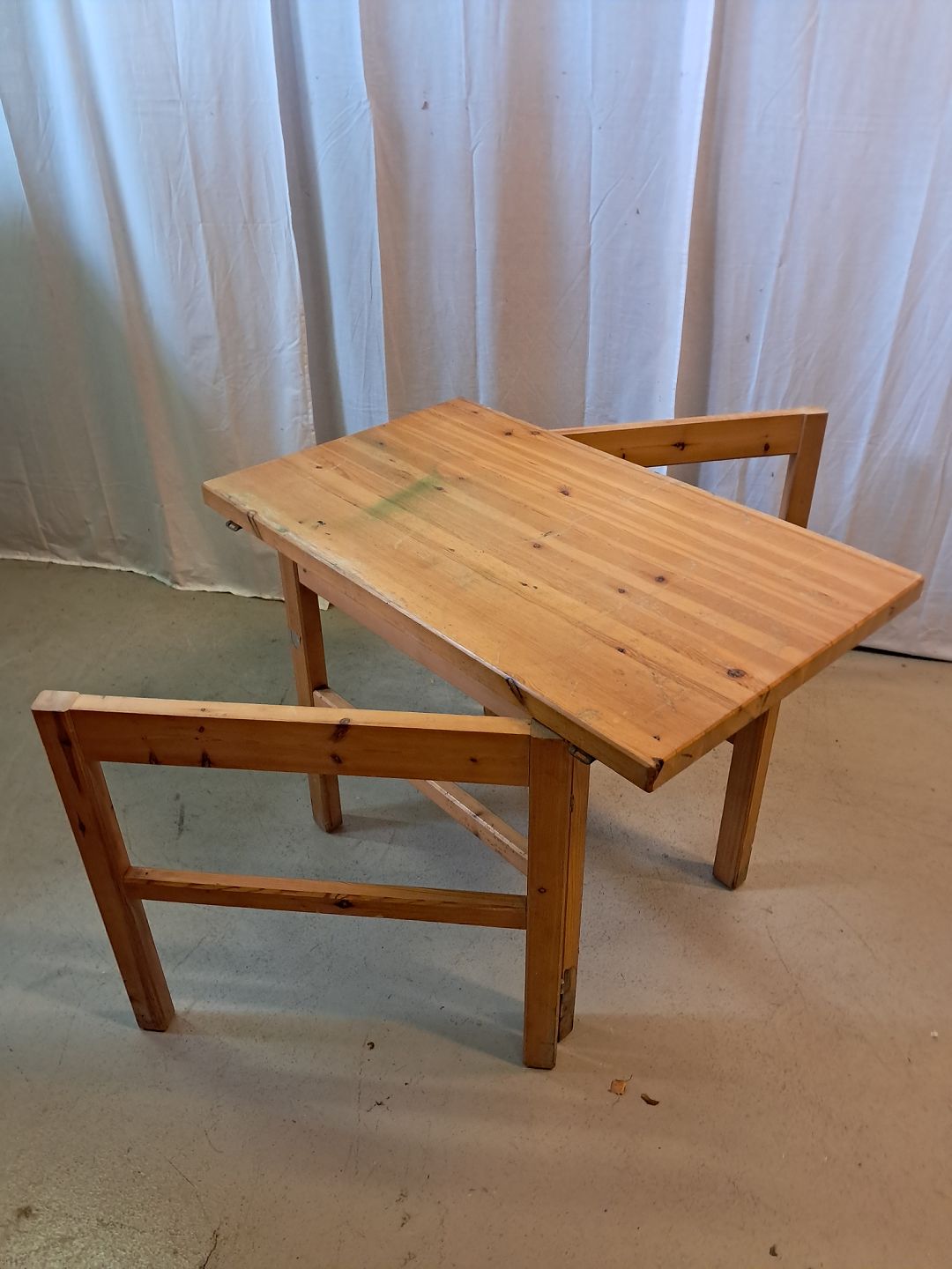 Text available in Danish: Bord i massivt fyrretræ, fra 1980erne.