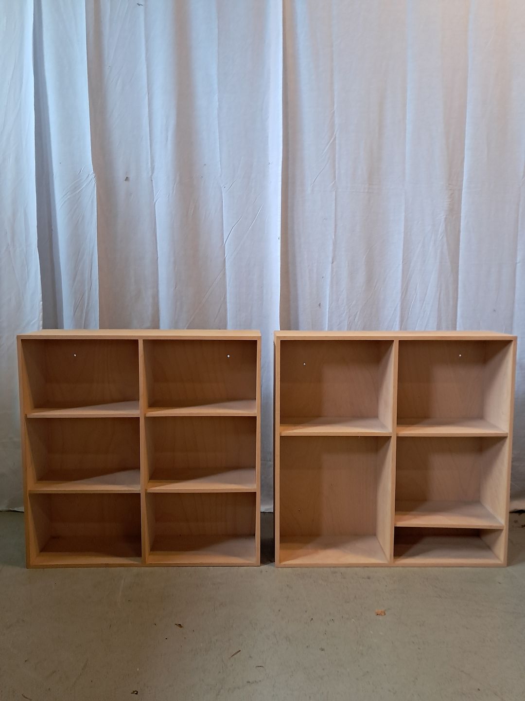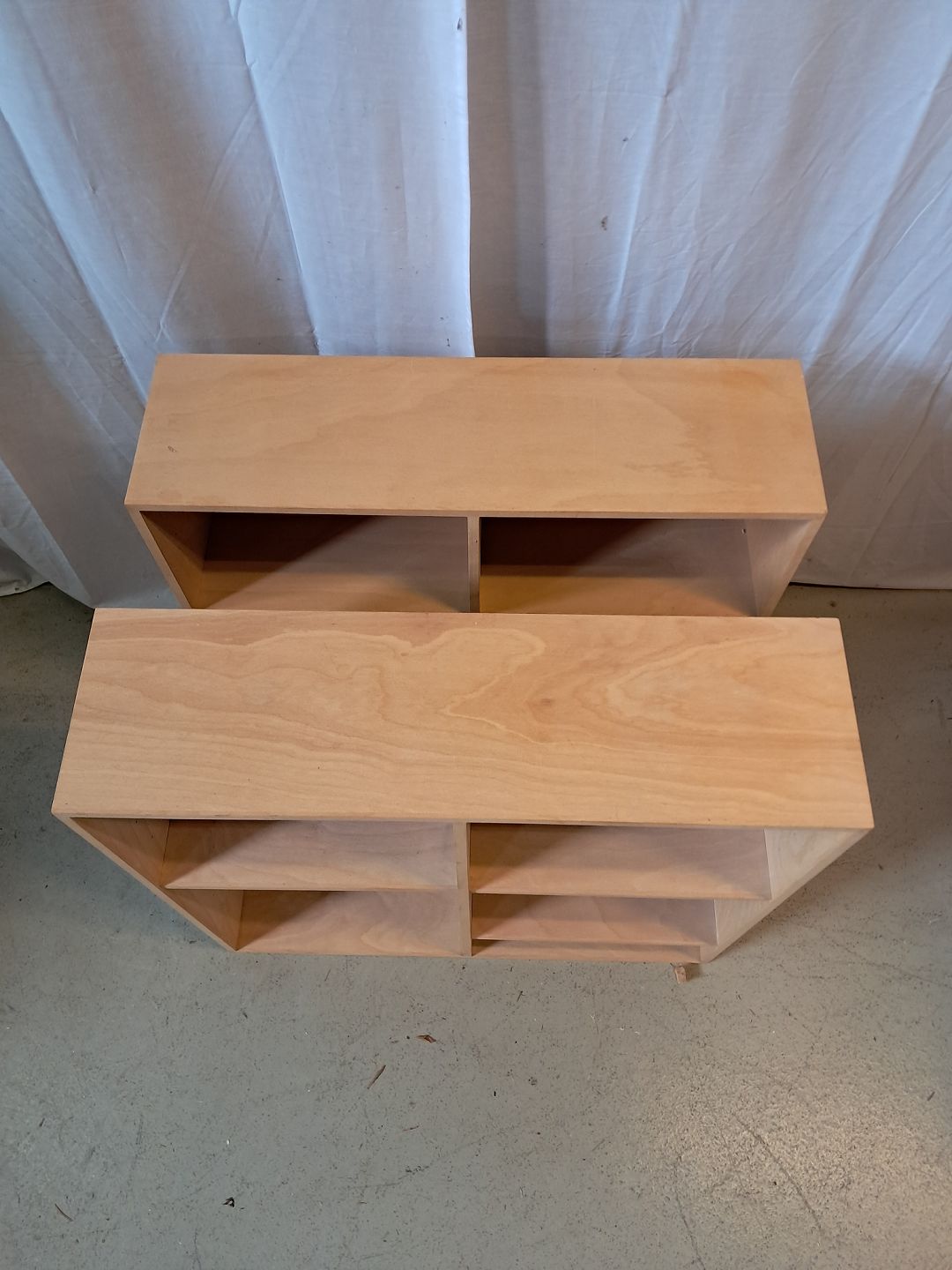 2 At-bo reolkasser i krydsfiner, fra 2000erne.