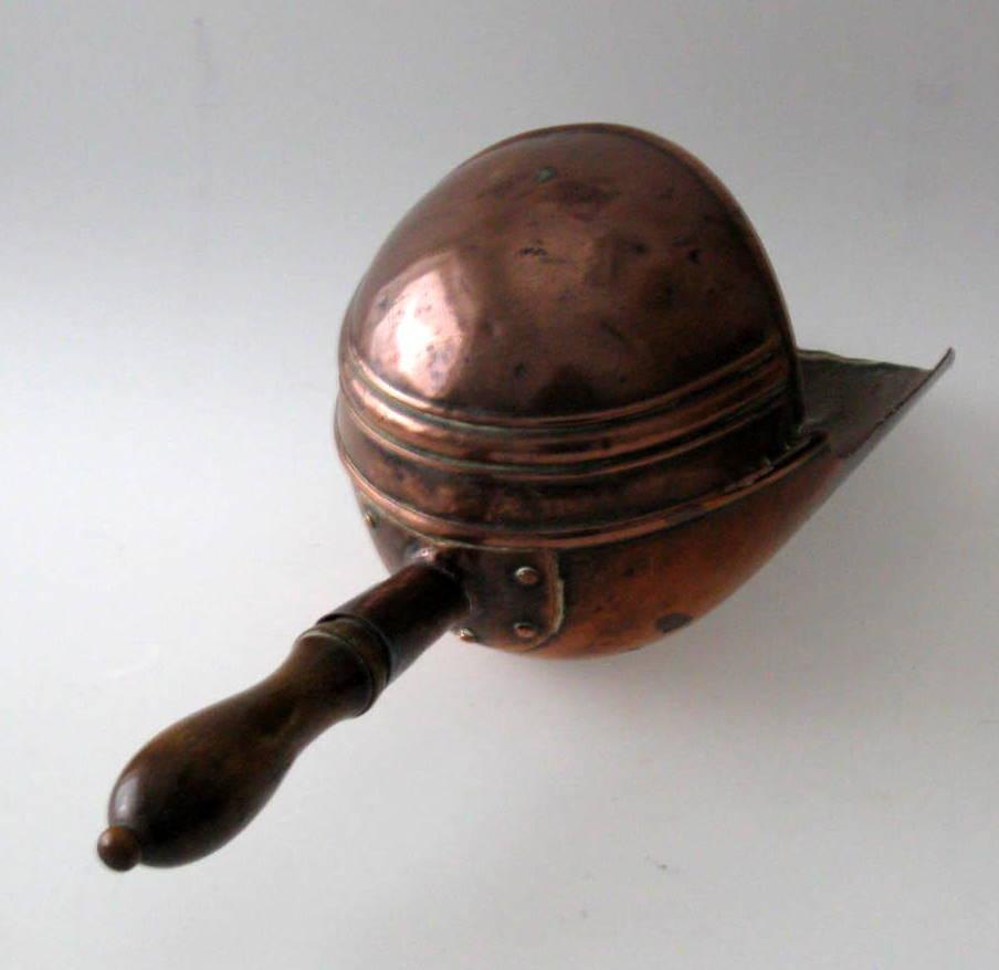Kornmass-Gerät aus Kupfer. 19. Jh. Dänemark. Stiel aus gedrehtem Buchenholz. L.: 39 cm.