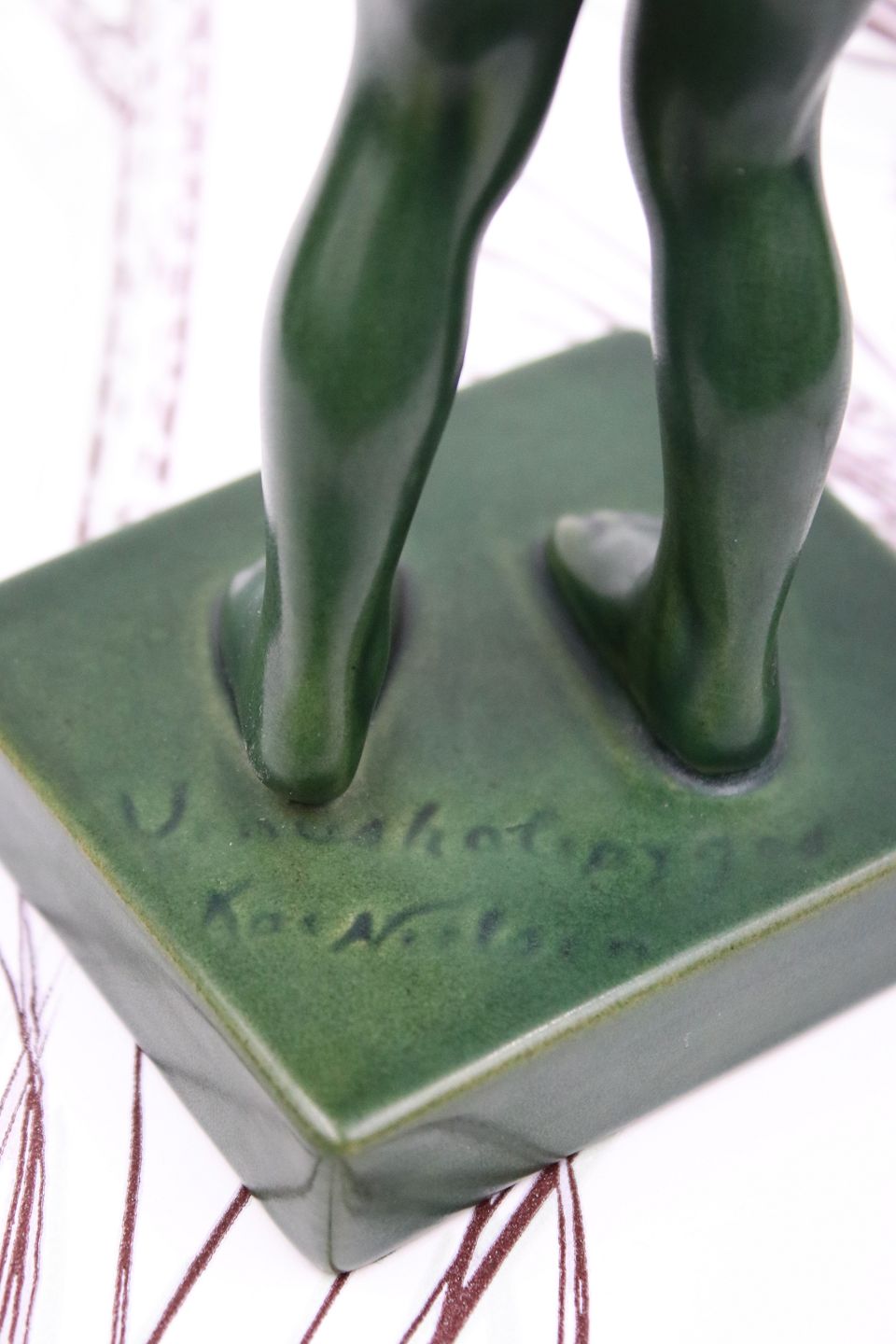 Kai Nielsen Venus figur i mørkegrøn glaseret terracotta.