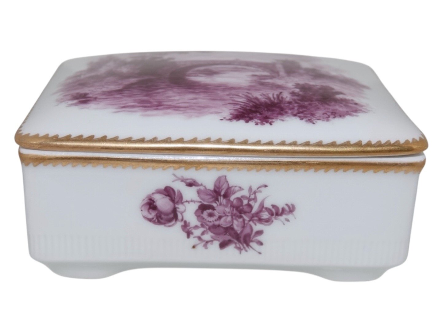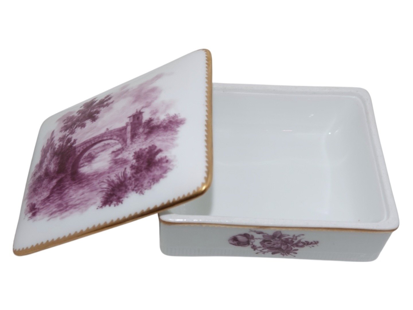 Pirkenhammer porcelæn fra Bøhmen / Tjekkoslovakiet, lågæske med purpur dekoration.