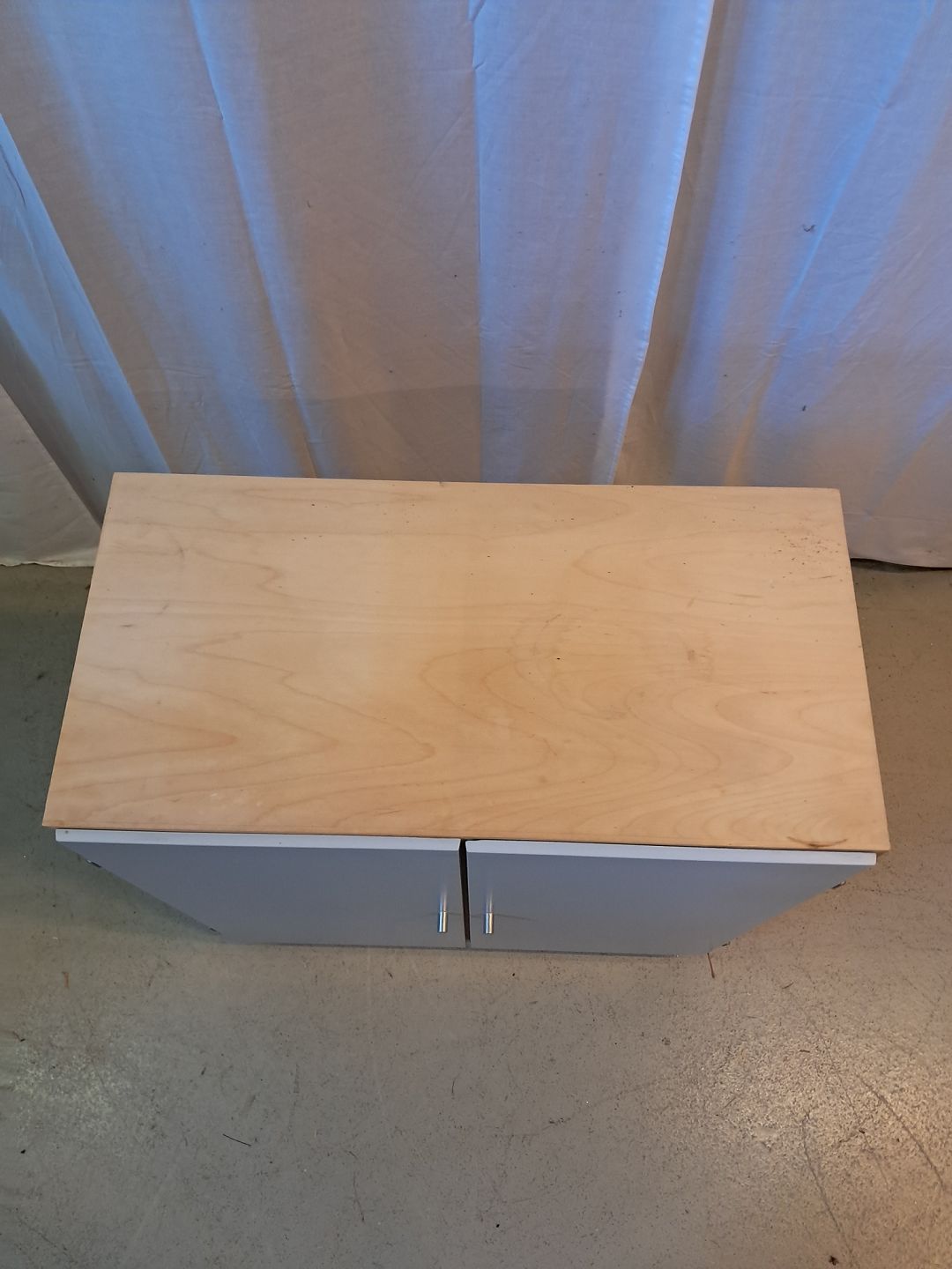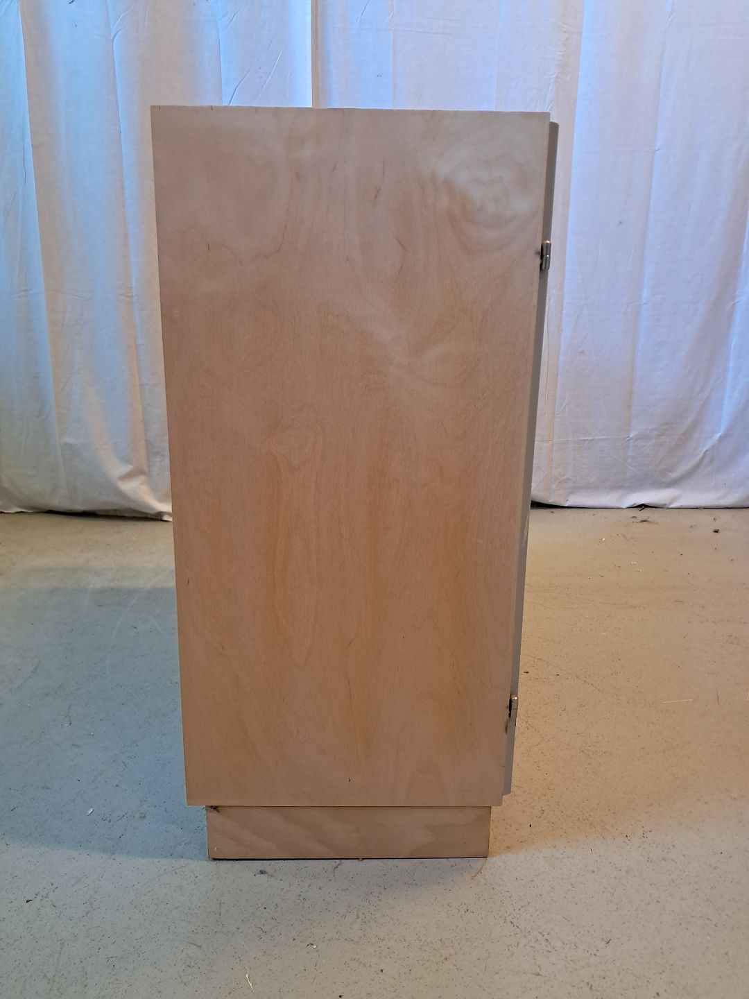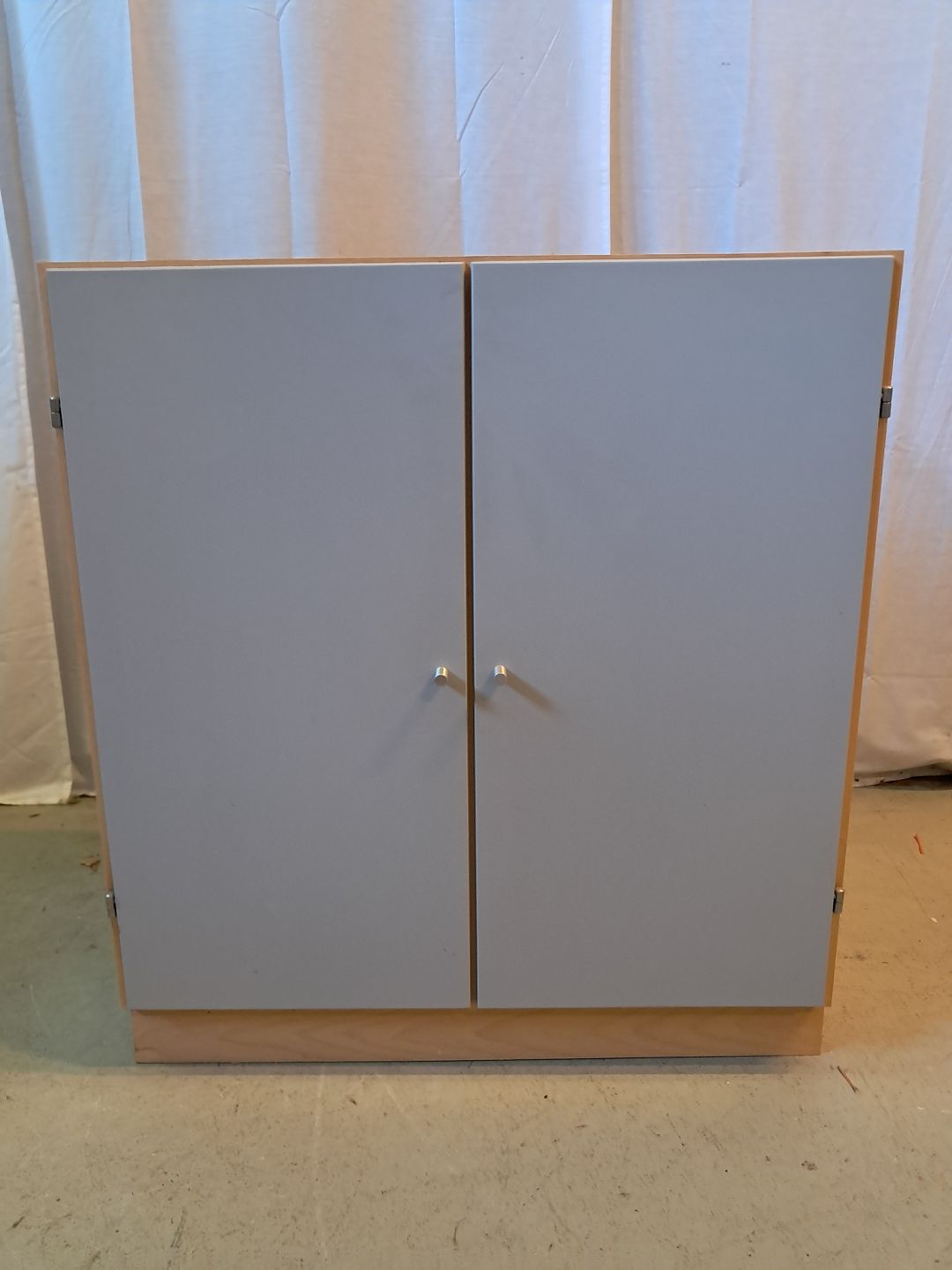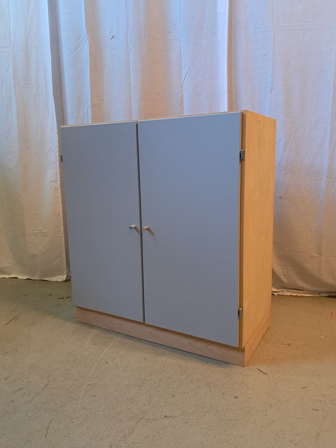 At-bo reolkasse i krydsfiner med malede låger, fra 2000erne.