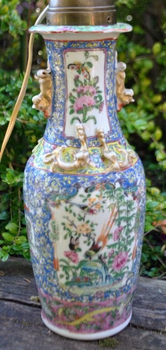 Kinesisk vase - omgjort til lampe, 19. årh. Famille rose.