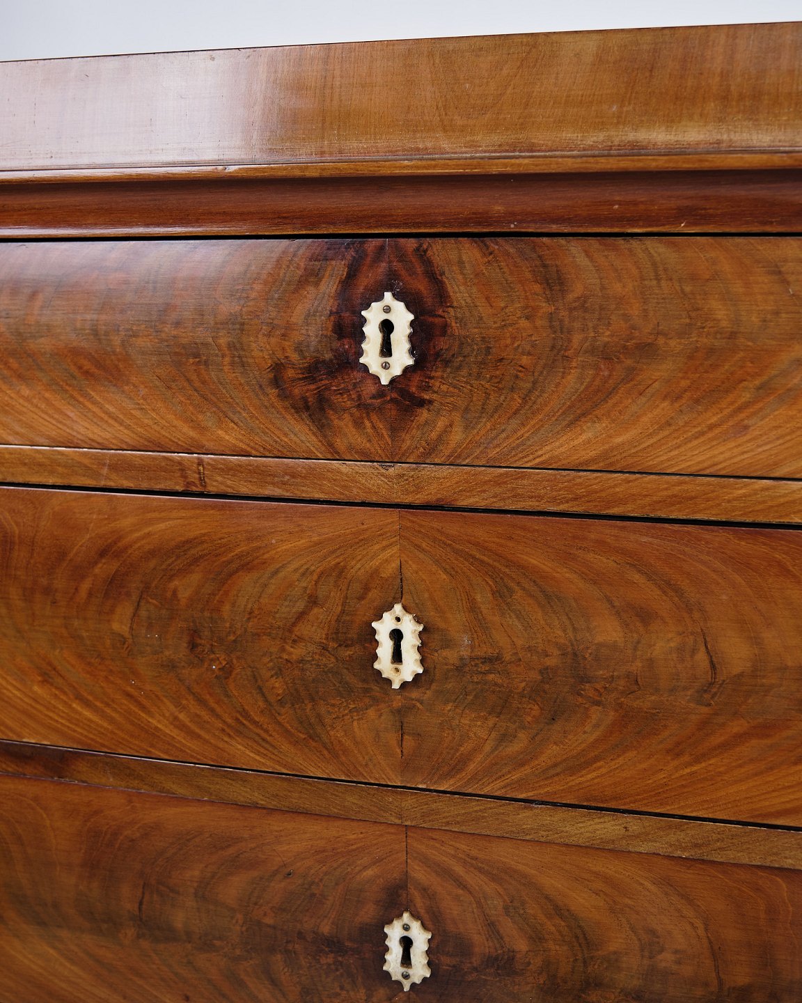 Text zugänglich auf Dänische: Antik kommode i mahogni fra 1860’erne. Med 7 skuffer. Efterses og nøglehuller repareres inden levering.