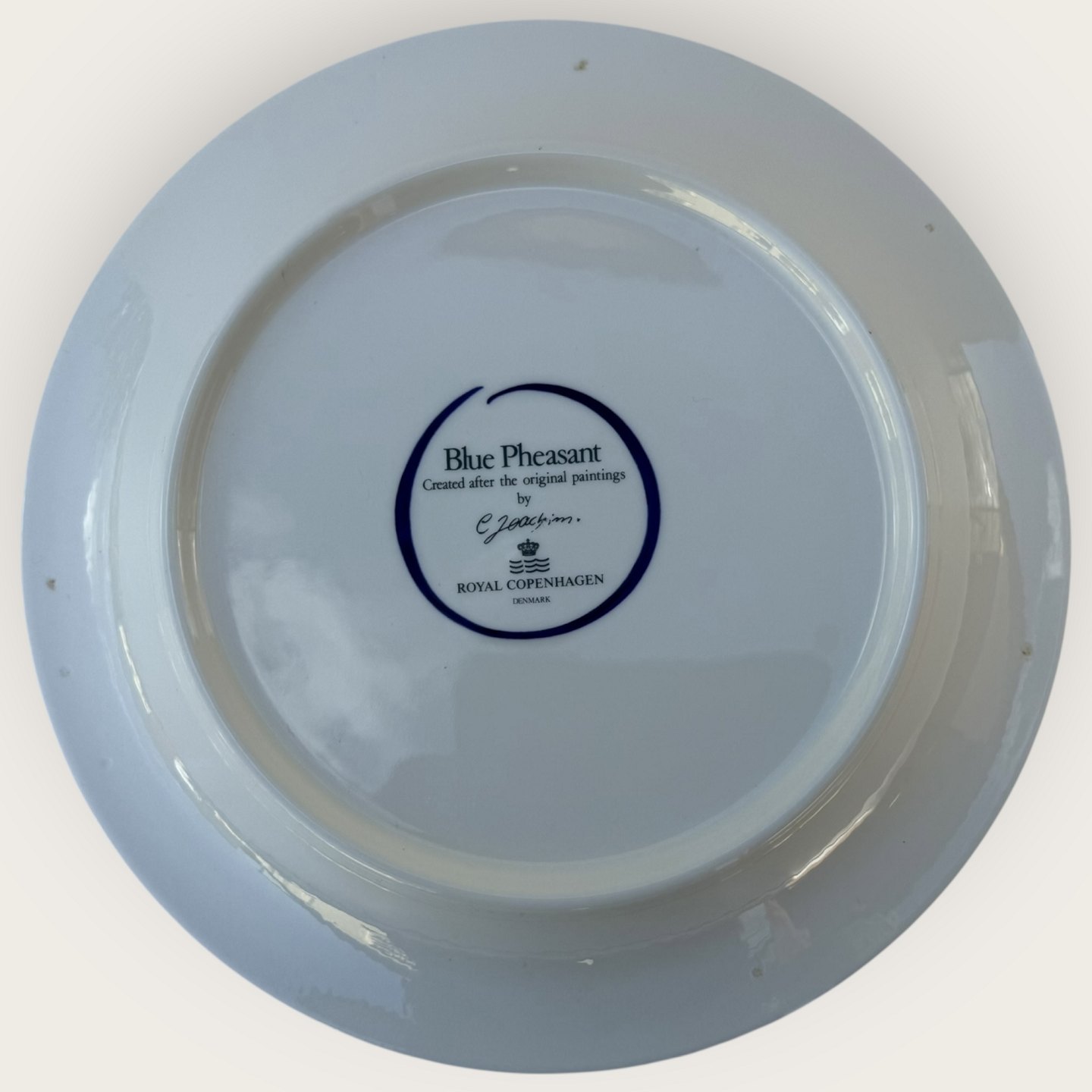 Royal Copenhagen, Blå fasan, Blue Pheasant, Middags tallerken, 24cm i diameter, 3. sortering, Nyfortolkning af Christians Joachim's design *Pæn stand*