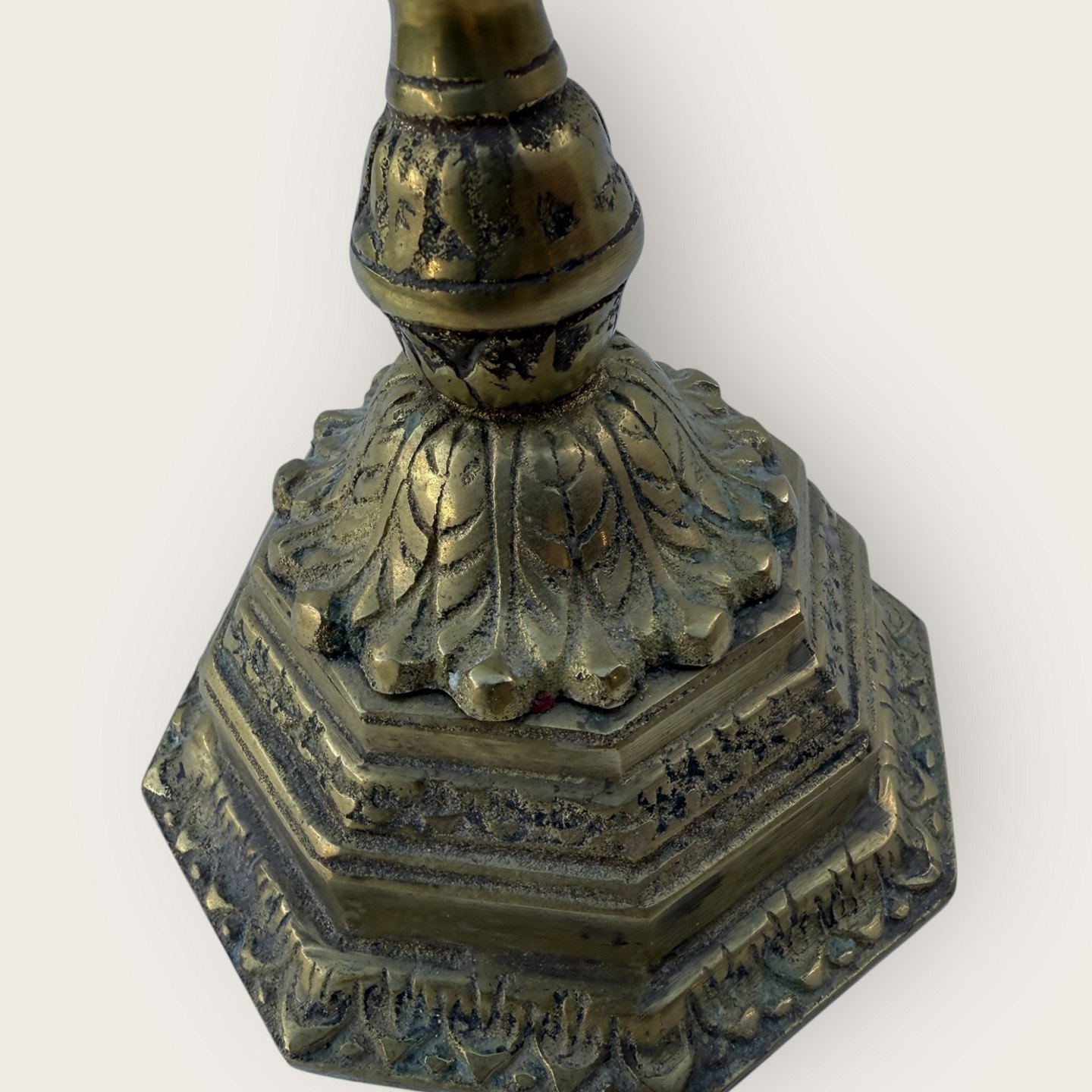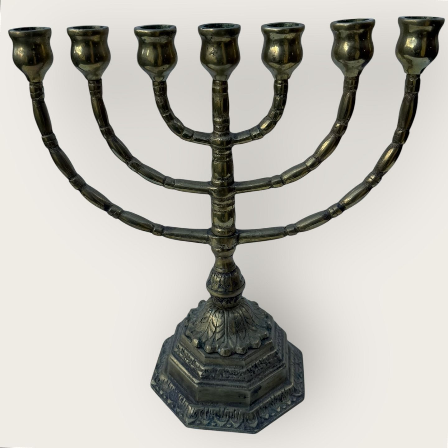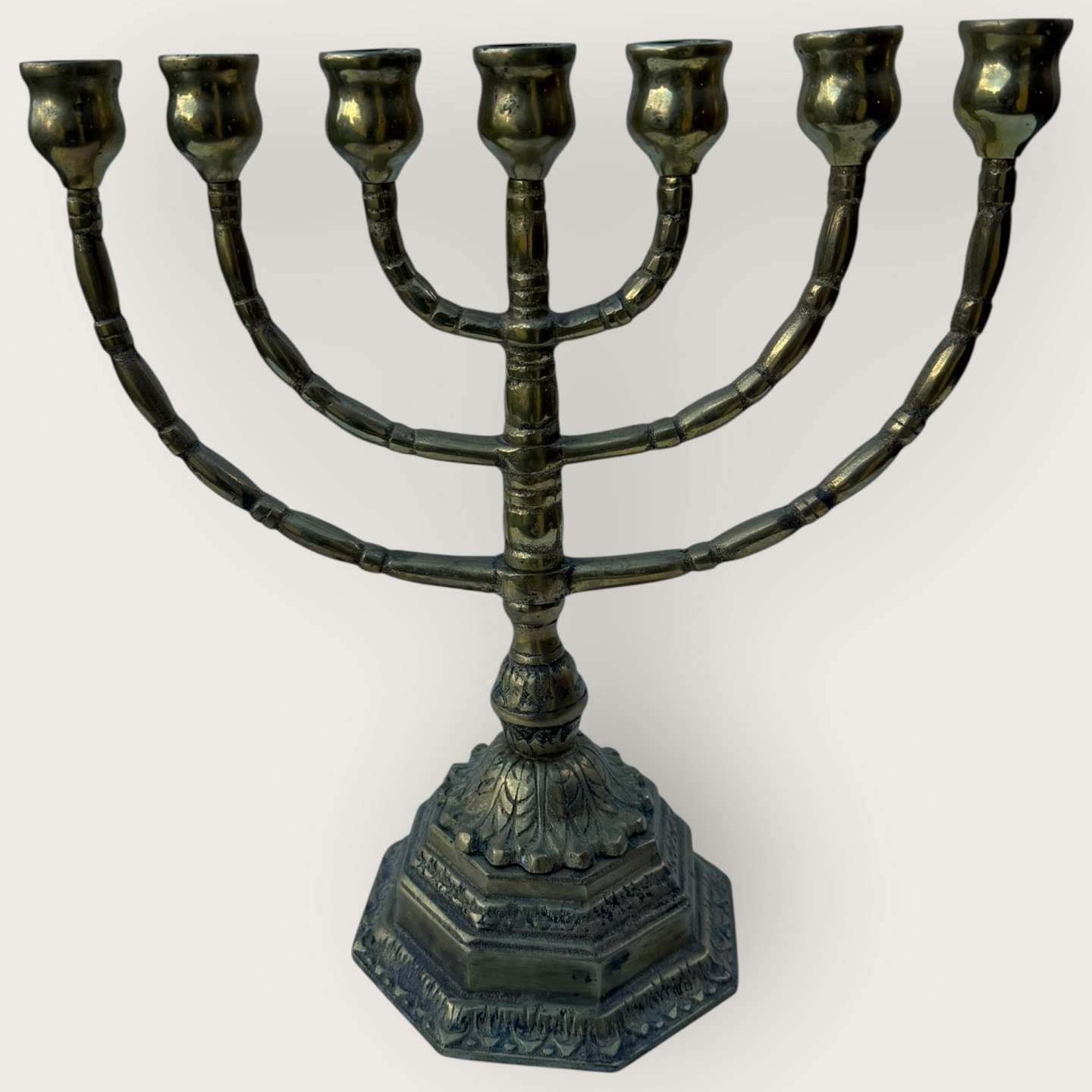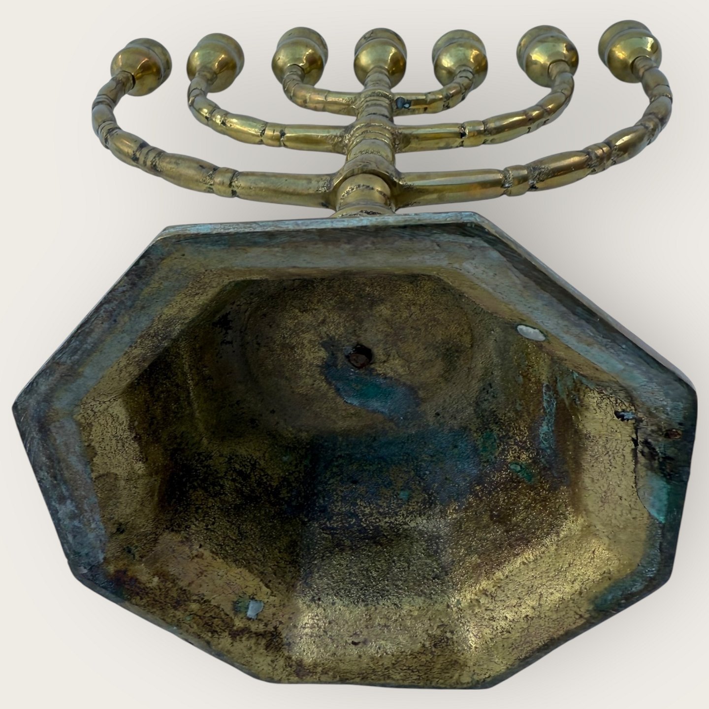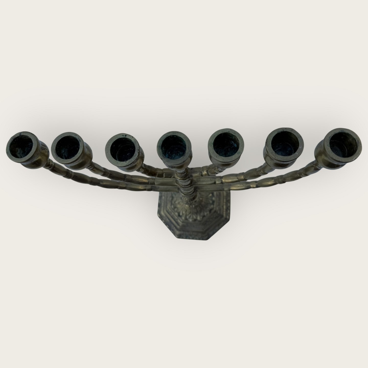 7-armiger Kerzenständer aus Messing, 27,5 cm hoch, 26,5 cm breit *Schöner patinierter Zustand*
