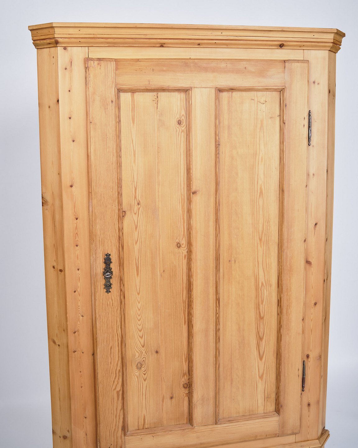 Antikt hjørne fra 1920’erne udført i massivt fyrtræ med originale messingbeslag.