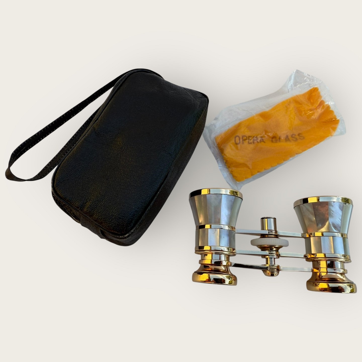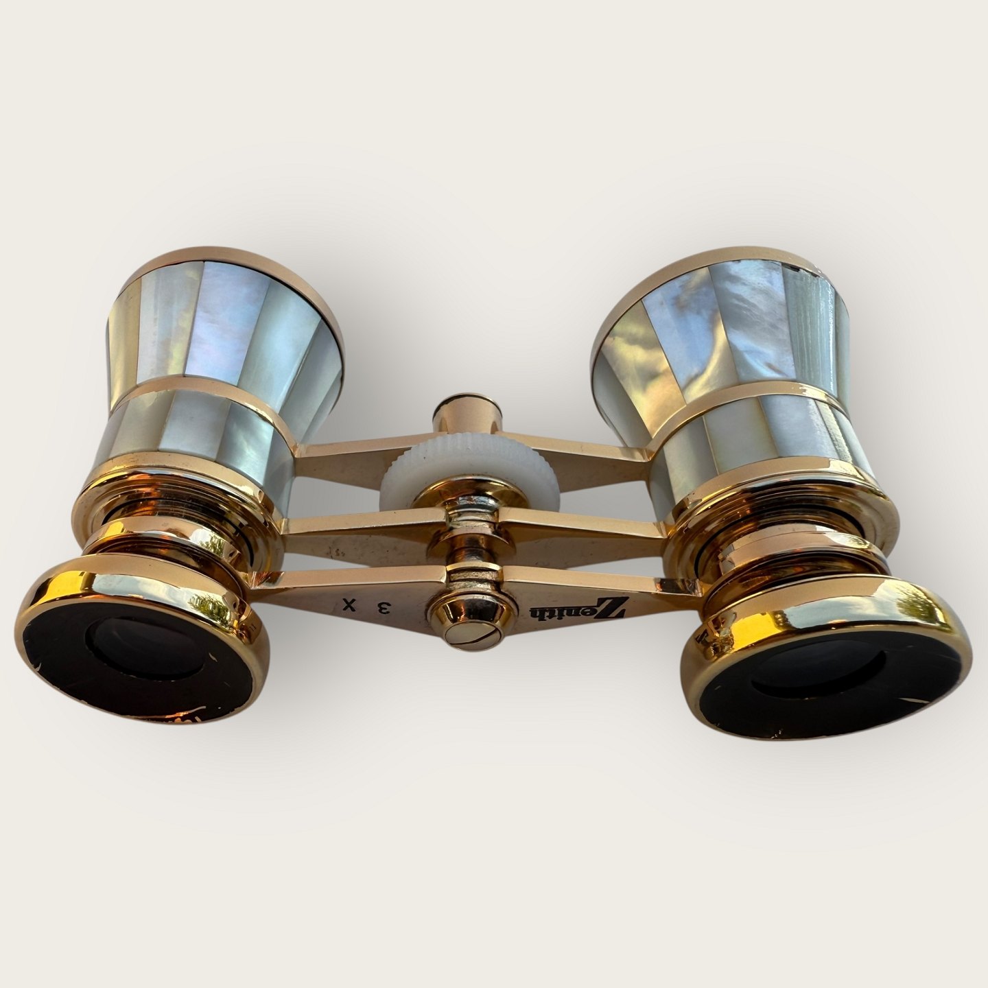 Zenith Japan, teaterkikkert i metal og perlemor, med hylster, Mål: 10x5,5cm, *pæn stand*