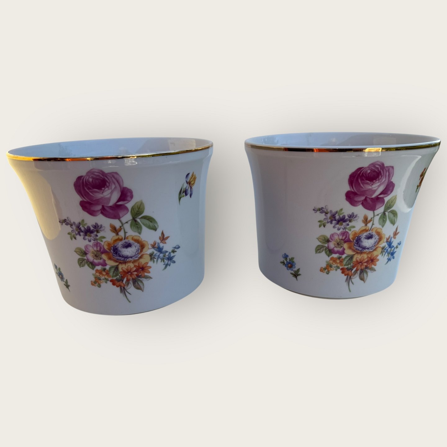 Kahla, GDR ( det tidligere Østtyskland), blomstret, Urtepotteskjuler 14cm høj, 17cm i diameter, *lidt kalk indvendigt (se foto) ellers pæn stand*