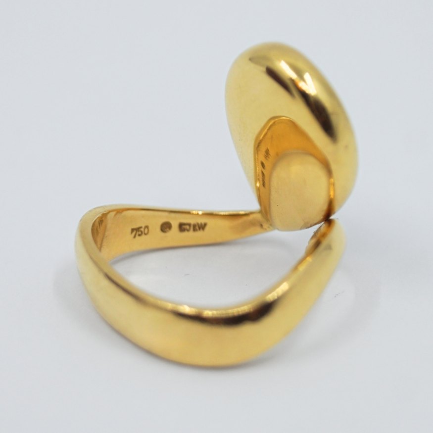 Georg Jensen; Ring i 18 kt. guld prydet med stor dråbeformet opal.