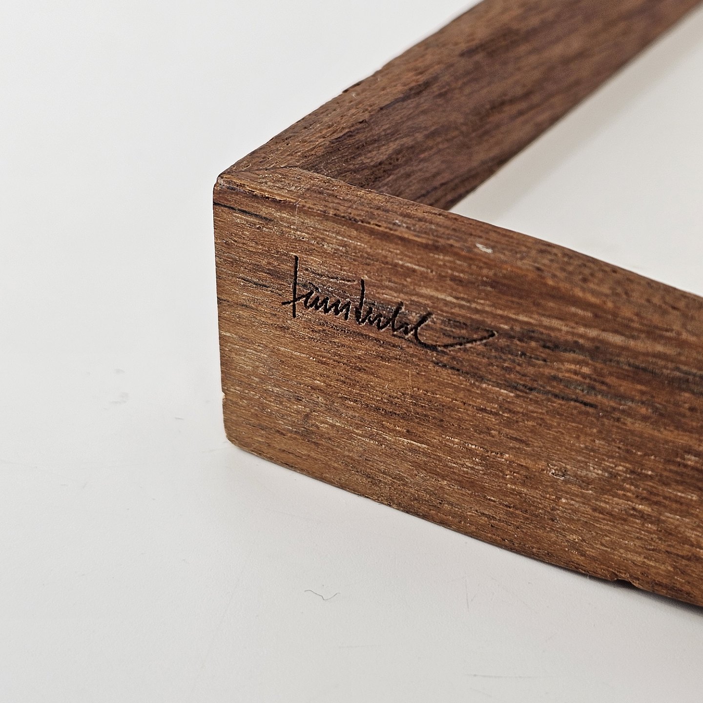 Vendbar bakke i teak tre og højglans laminat, sort på den ene side og hvid på den anden