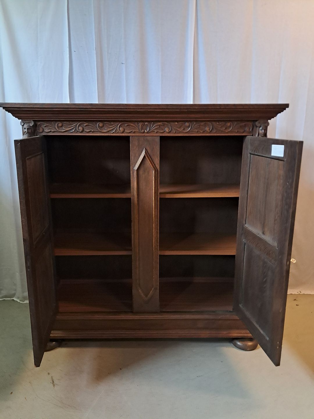 Dækketøjsskab i fineret egetræ, fra 1930erne.