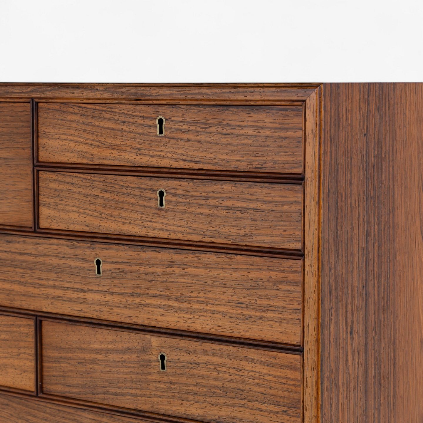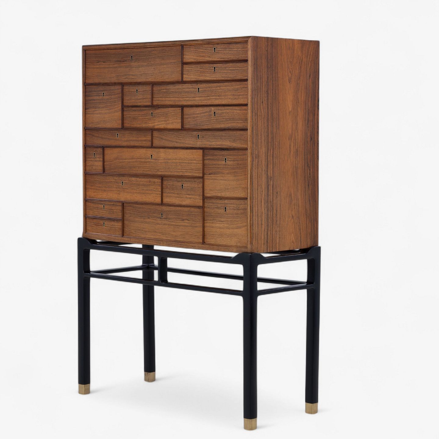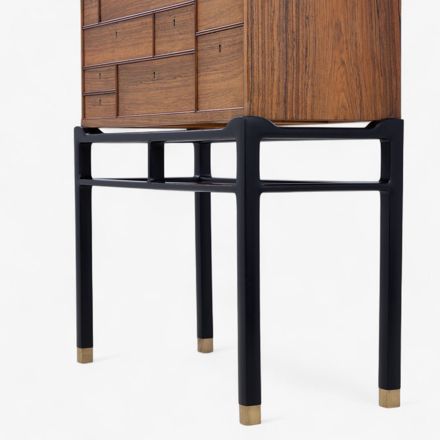Sjældent skab i palisander med skuffer og sortlakeret stel med messingsko.