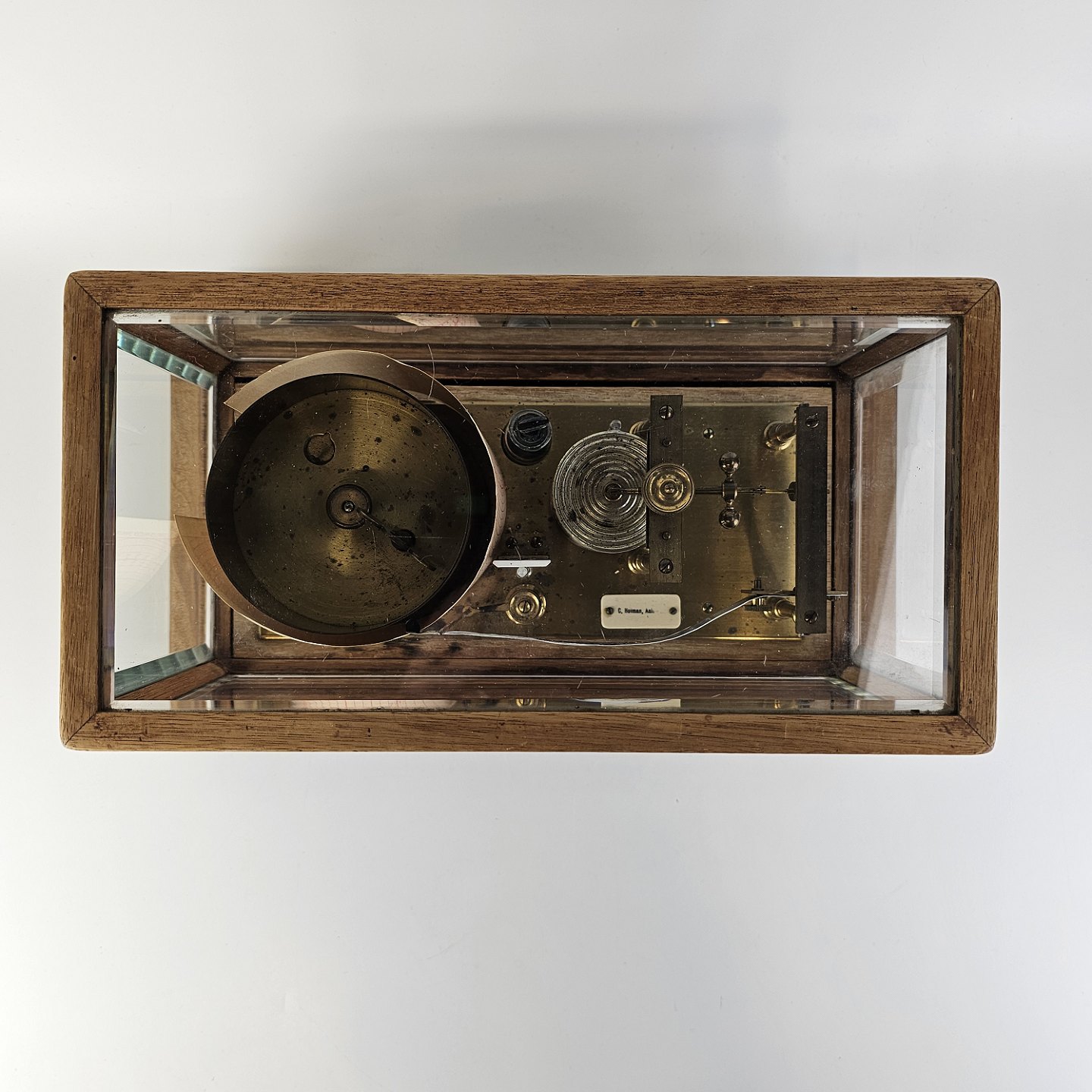 Mærkat med C. Horman, Aalborg, delvist skrabet af
