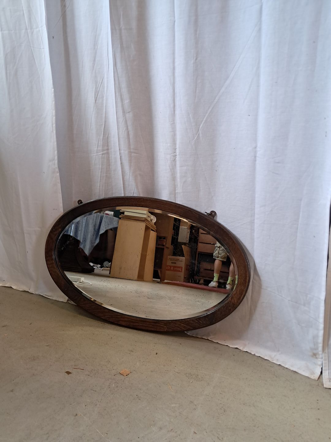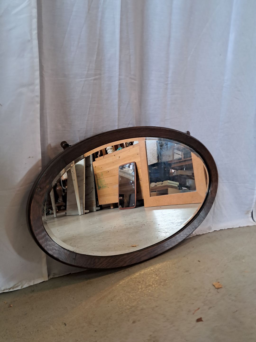 Ovalt spejl i egetræ, fra 1930erne.