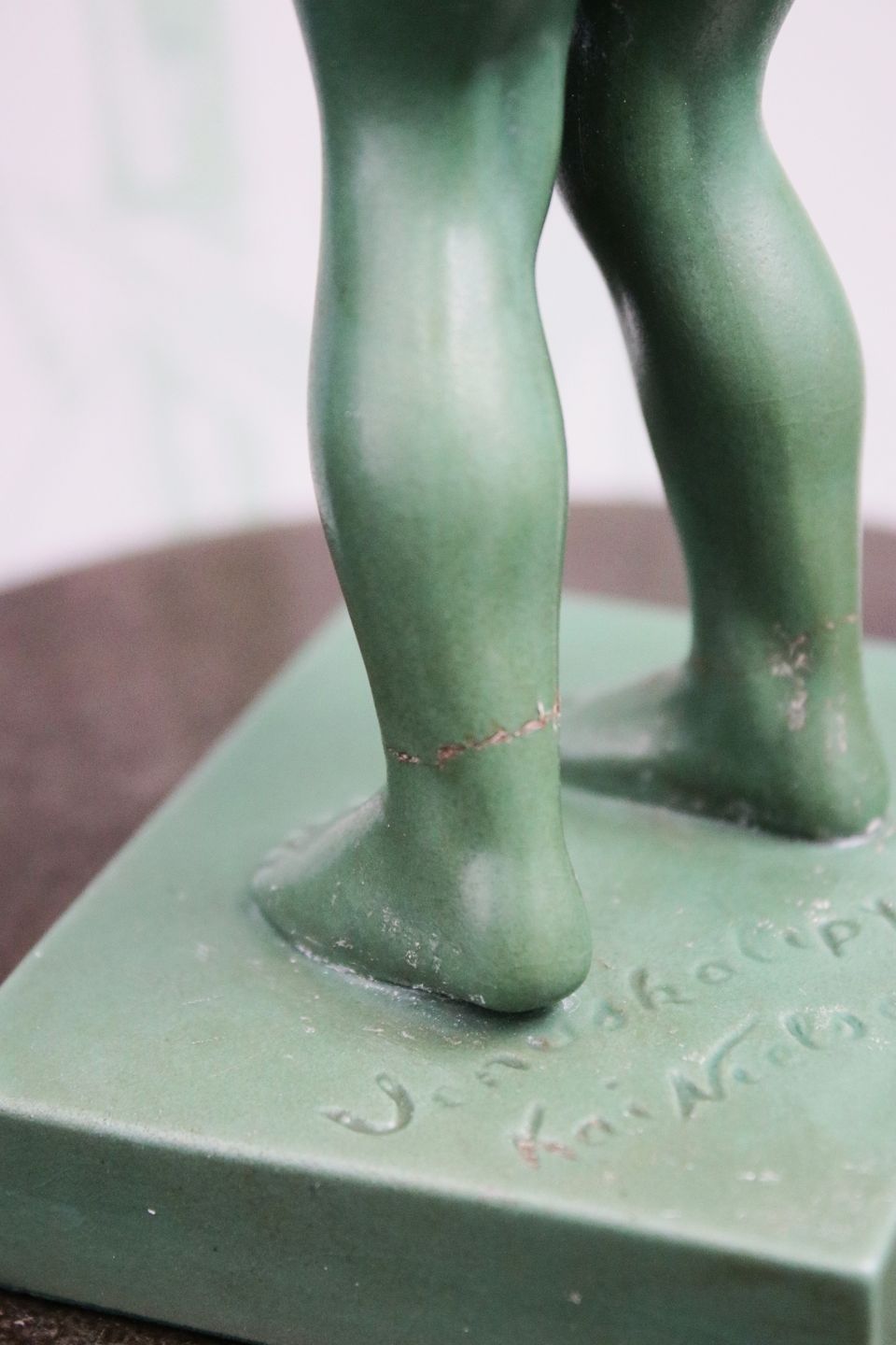 Kai Nielsen Venus figur i mørkegrøn glaseret terracotta.