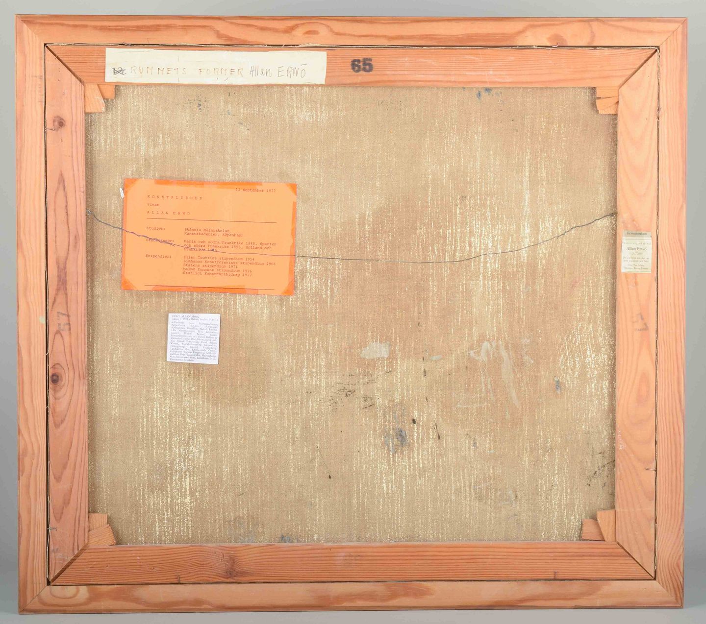Allan Erwö (1931–2006) var en dansk billedkunstner tilknyttet 1900-tallets abstrakte malertradition. Han arbejdede hovedsageligt med olie på lærred og var optaget af farvens og formens samspil i rumlige og arkitektoniske kompositioner. Ernö deltog i flere danske udstillinger i 1960’erne og 70’erne, hvor han blev anerkendt for sit bidrag til den danske modernismes udvikling.
