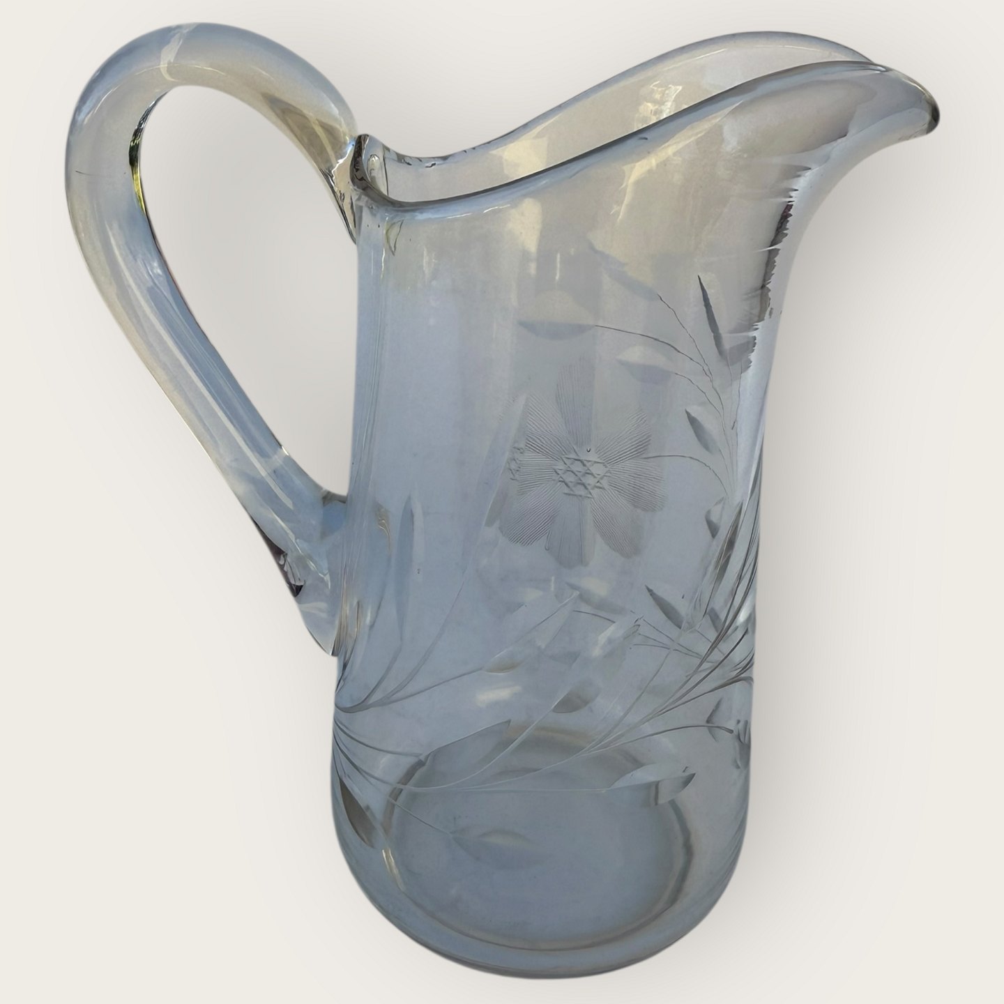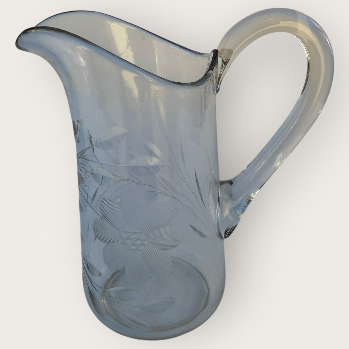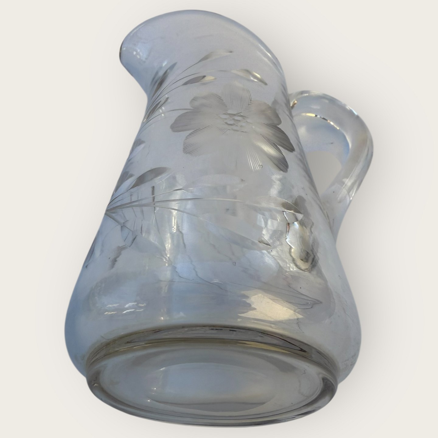 Glaskande, med blomsterslibninger, 17cm høj, 14x9cm bred, *Fin stand*