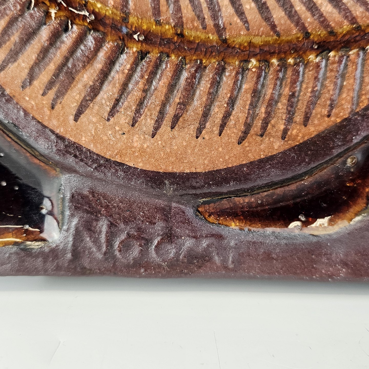 Relief i glaseret højbrændt stentøj med motiv af en fugl