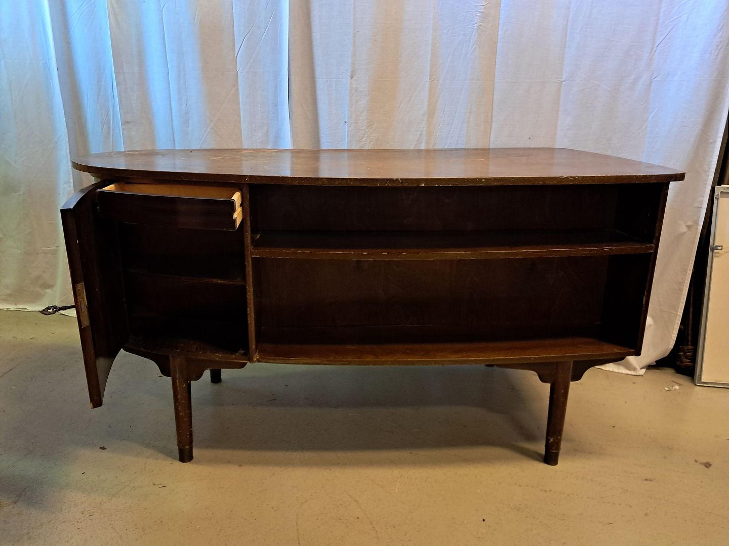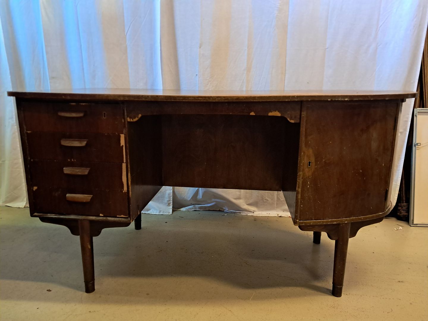 Skrivebord i fineret nødetræ, fra 1960erne.
