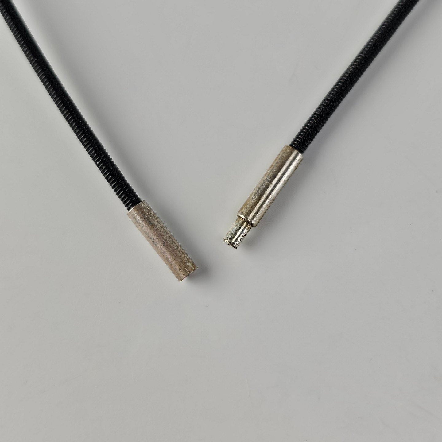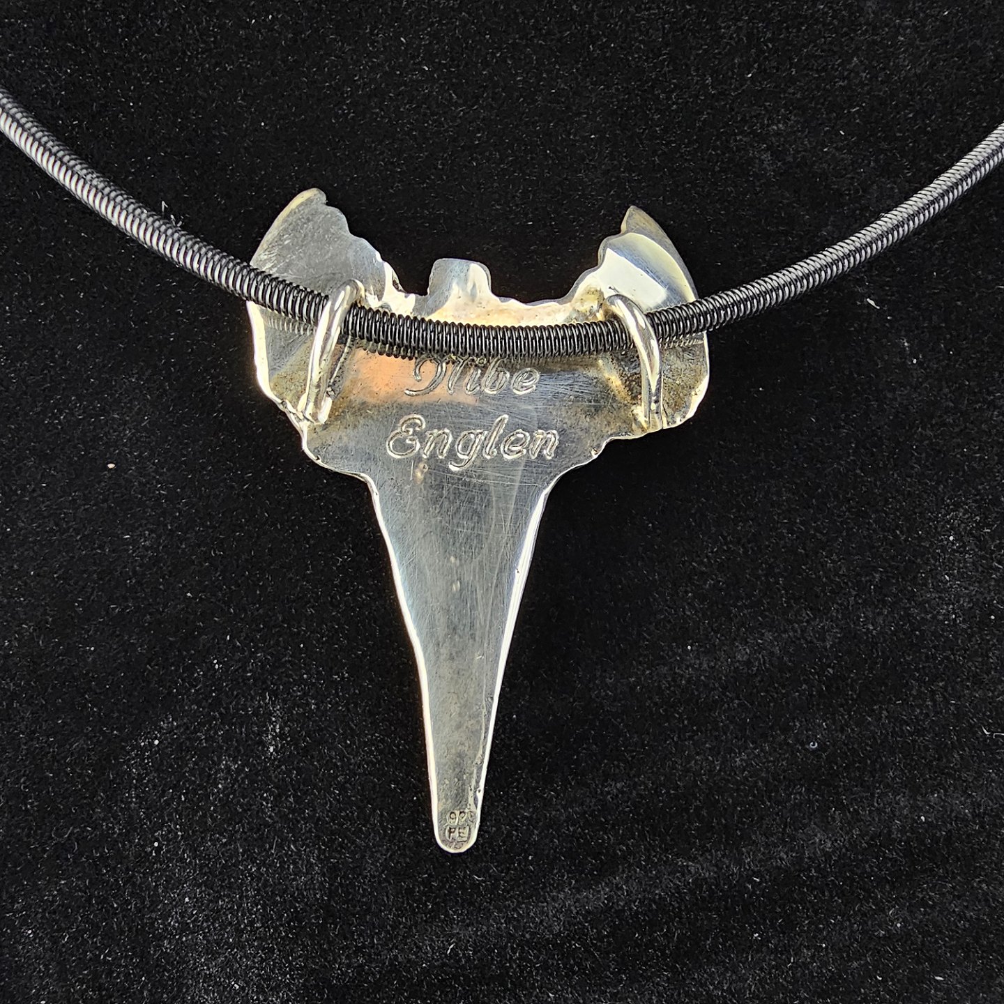 Halssmykke i sterling sølv med motiv af en abstrakt engel og læderrem, smykket er kaldet Nibe Englen