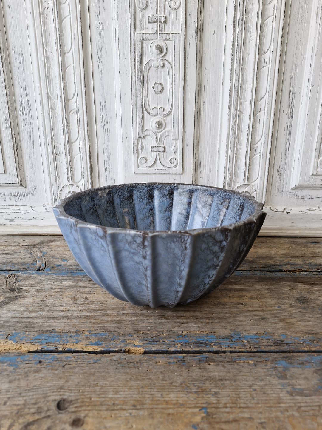 Michael Andersen stor riflet skål med smuk blå glasur