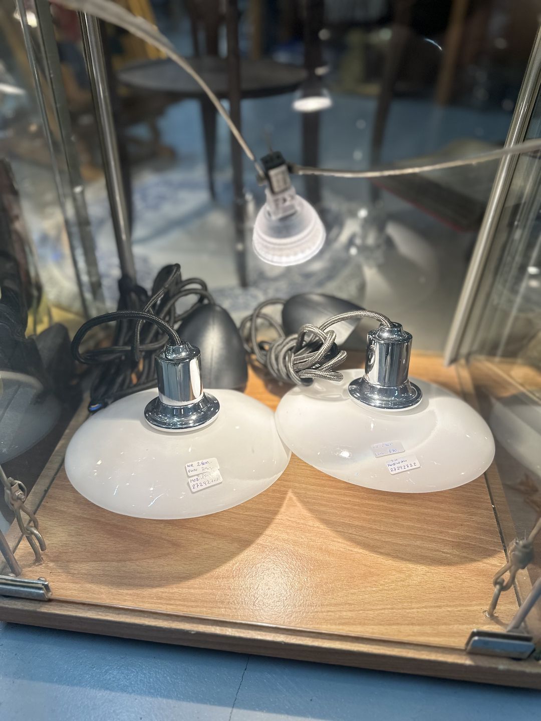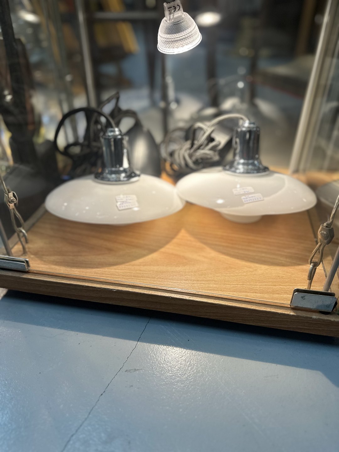 PH Lamper 2/1 pendler med opal glas skærme og krom