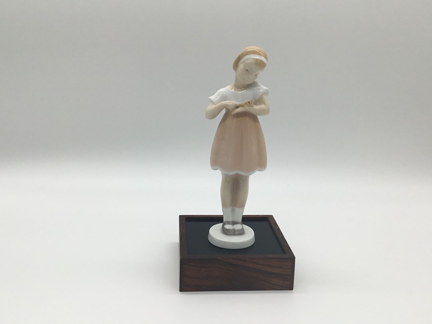 B & G Figur 2185 Pige i Rosa kjole med sommerfugl 19 cm 1 sort