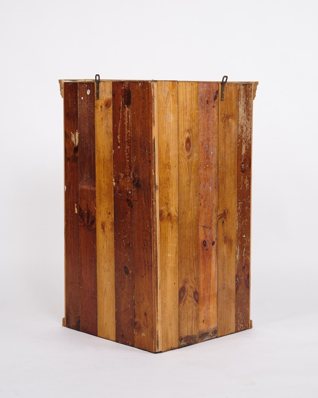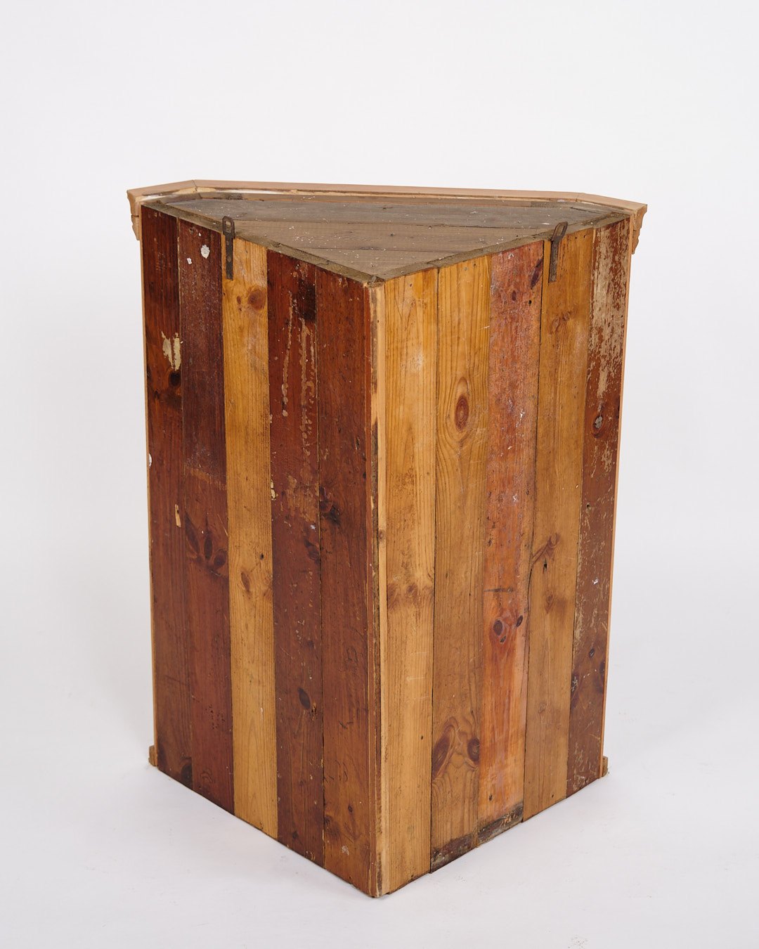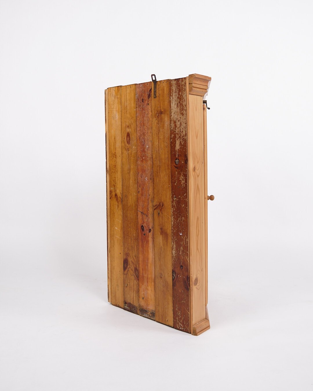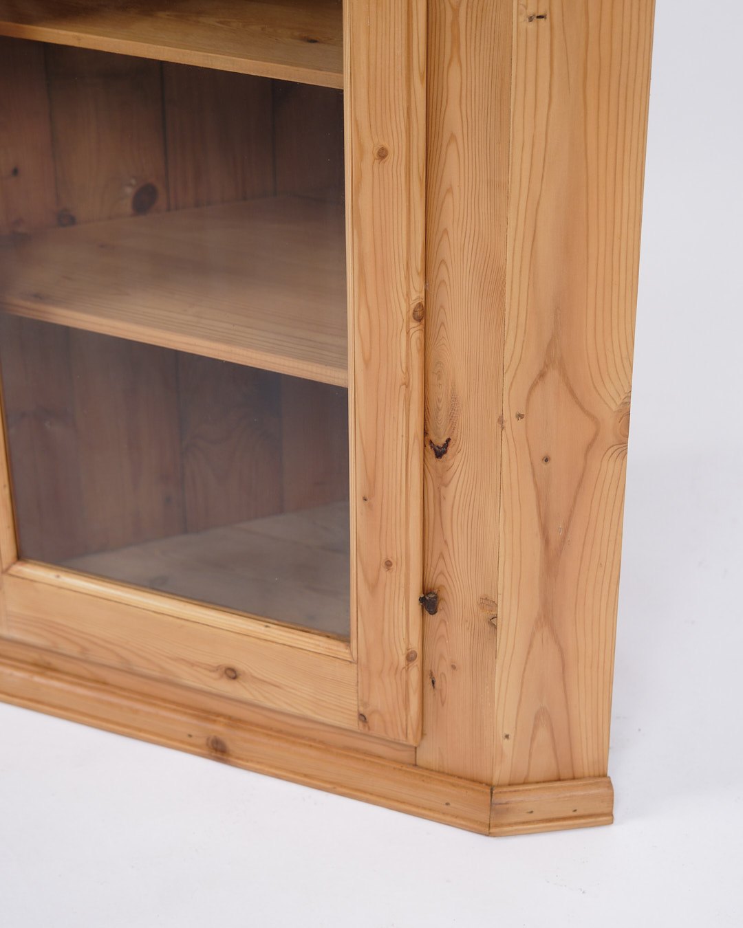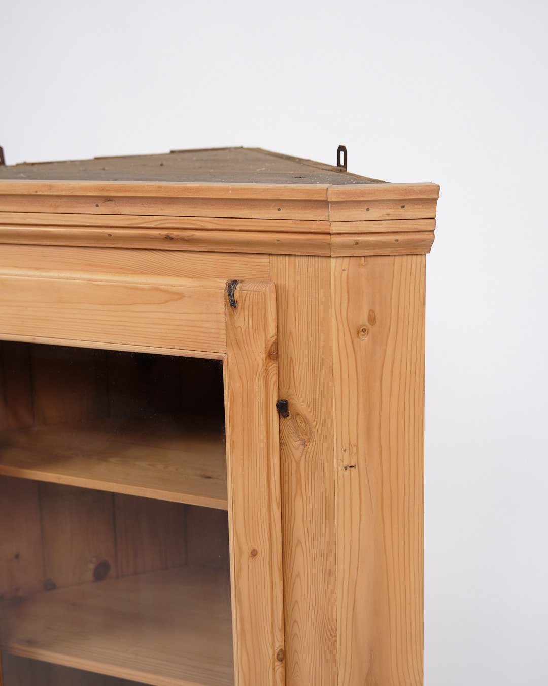 Text zugänglich auf Dänische: Antikt hænge hjørneskab i fyrretræ med glasdør. Fra 1890’erne.