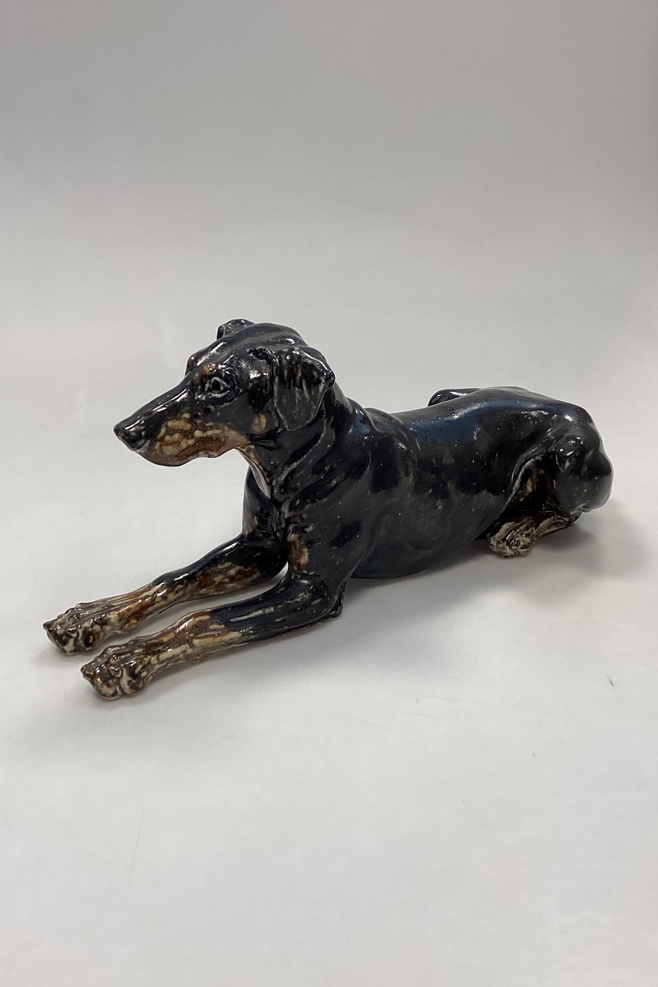 Royal Copenhagen Figur af hund - Dobermann No. 22691. Designet og signeret af Jeanne Grut. Glaseret stentøj. 1. Sortering.