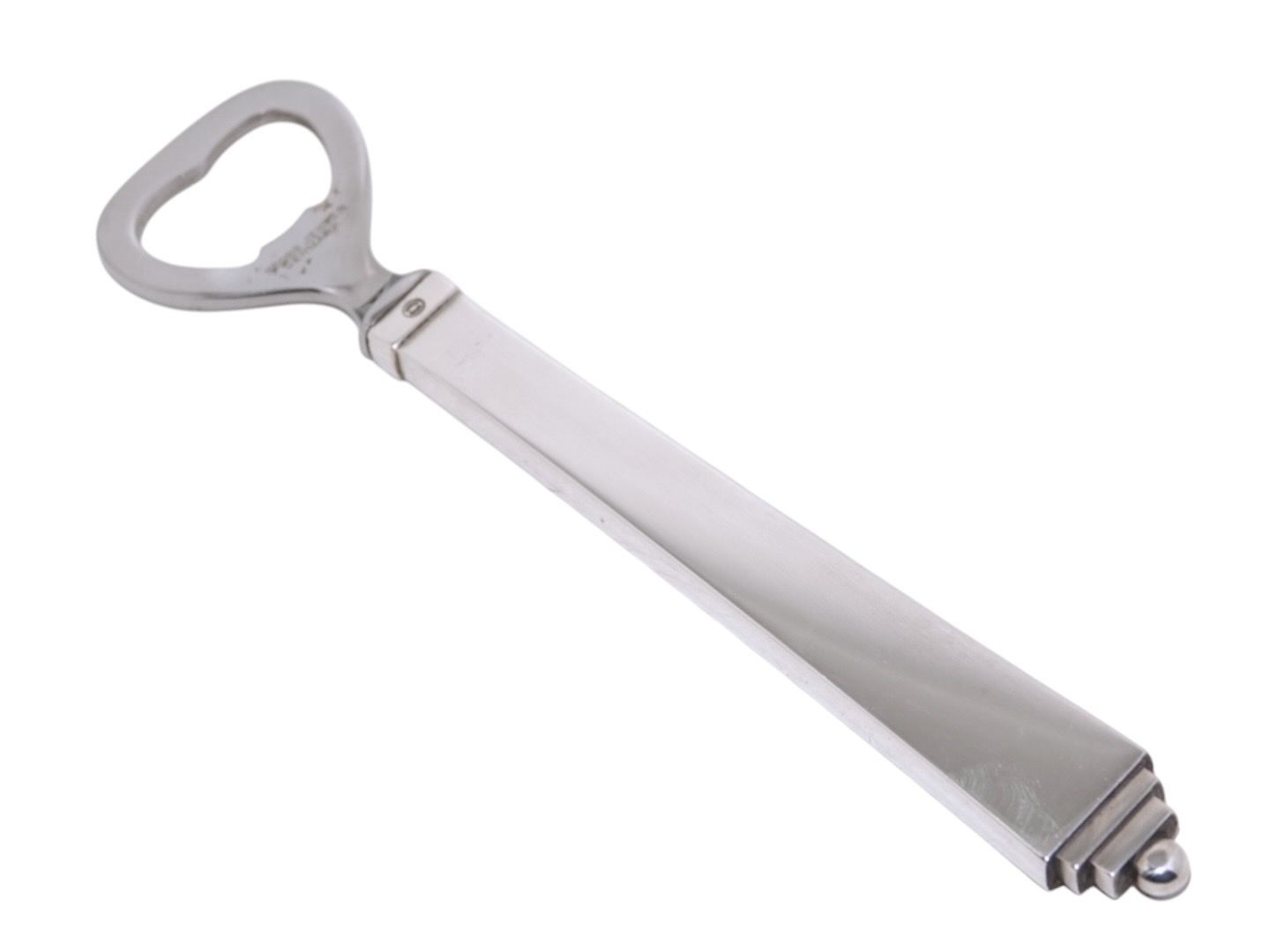 Georg Jensen Pyramid sterling silver and stainless steel, long bottle opener.