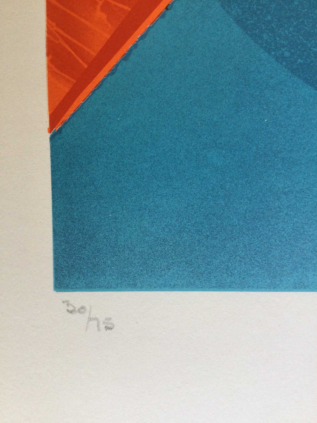 Text available in Danish: Farvelitografi af Finn Lohmann - Komposition 1976.