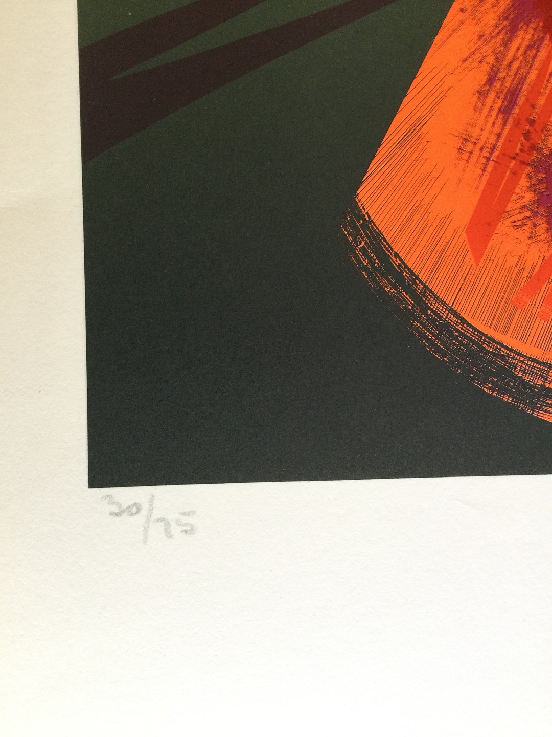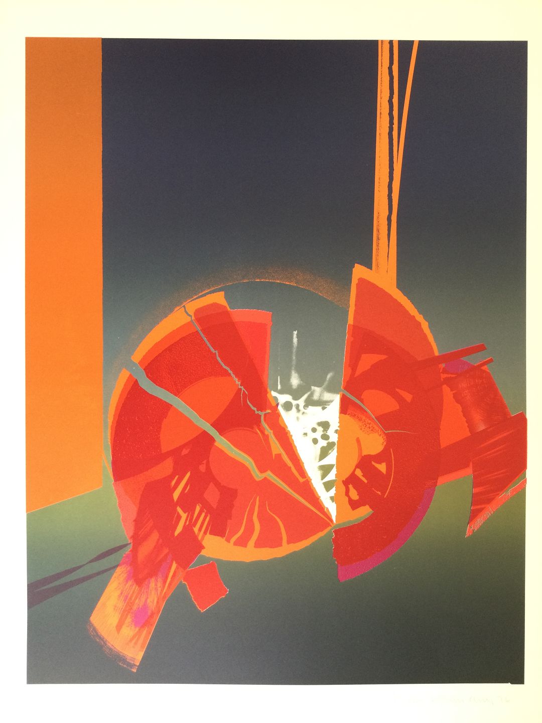 Farvelitografi af Finn Lohmann - Komposition 1976.
