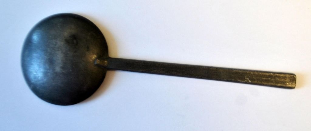 1700-tals brændevins ske i tin. Stemplet. L.: 17,5 cm.