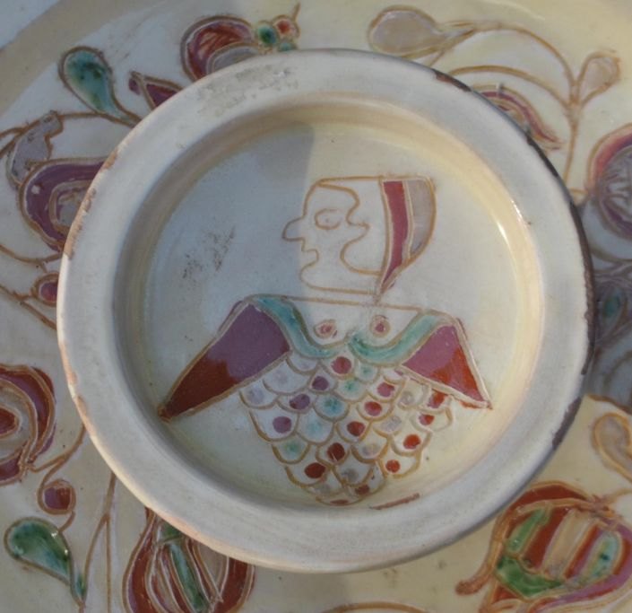 Nordtysk dobbelt fad, 20. årh. Lertøj med glasur og tekst. Kopi af ældre fad fra 1750. Signeret. H.: 7 cm. Dia.: 34 cm.